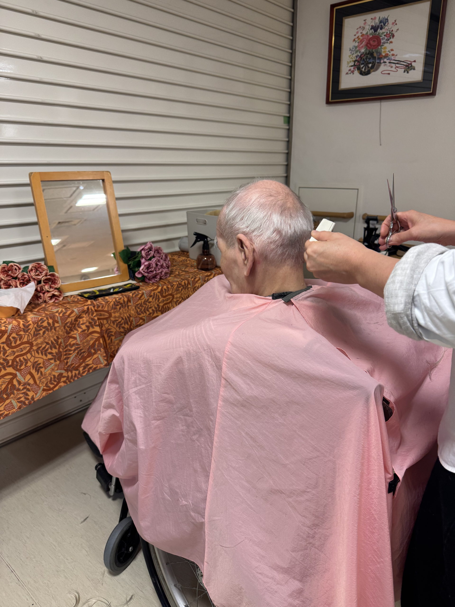 理美容の時間は終始落ち着いた雰囲気で進み、声掛けにも穏やかに応じられていました。