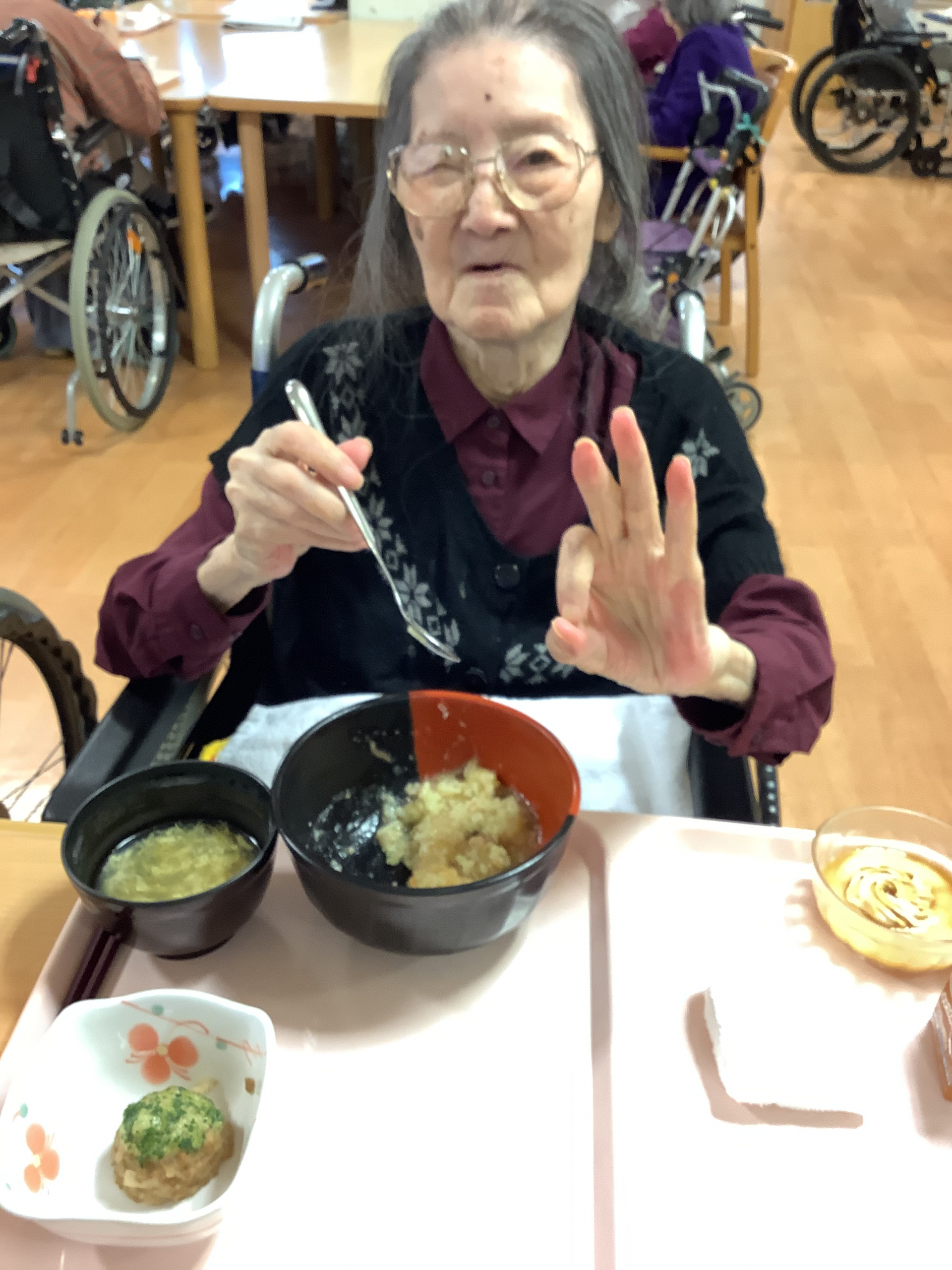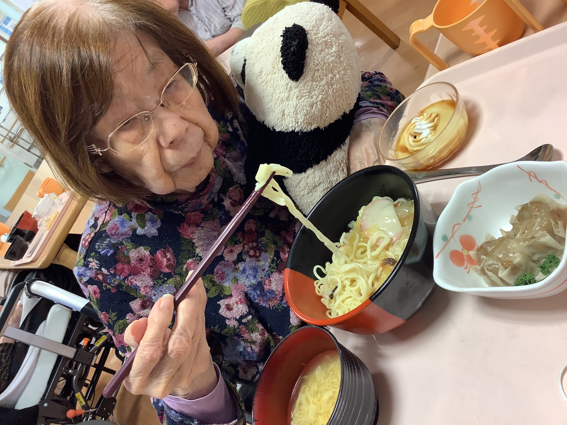 *麺の日・イベント食は…「あんかけ焼きそばランチ」 【お食事風景】【入居者様の素敵な笑顔】*