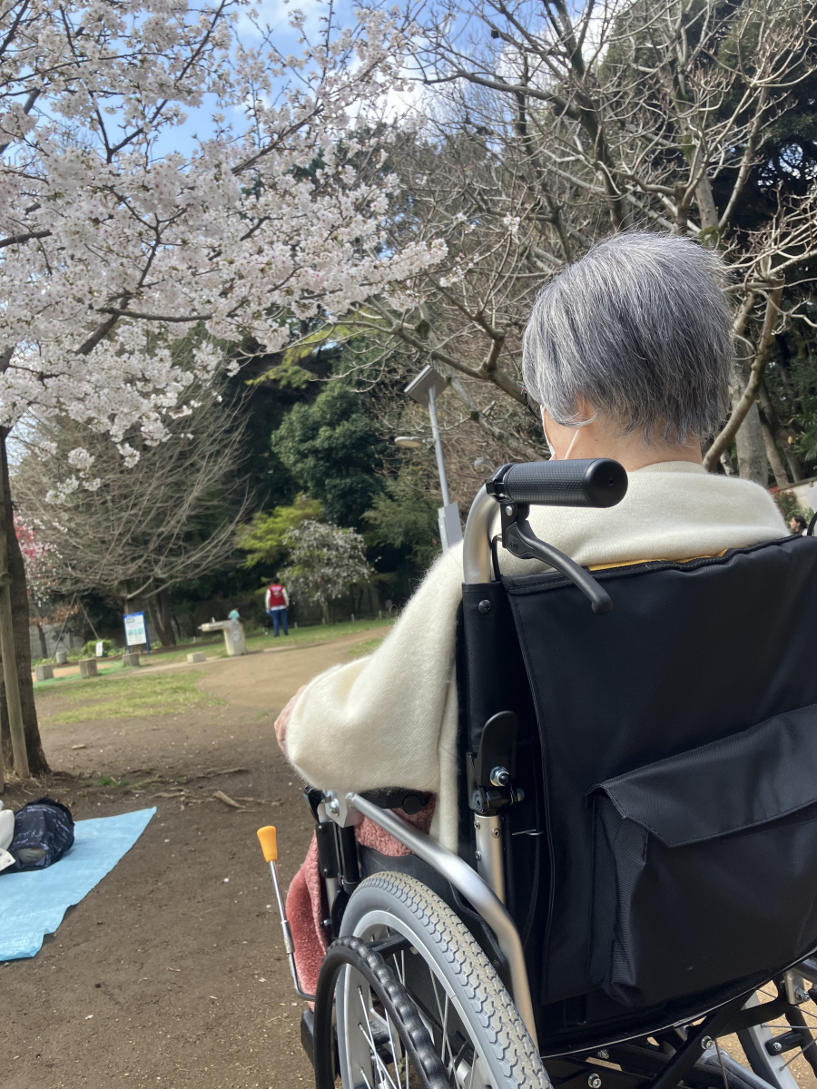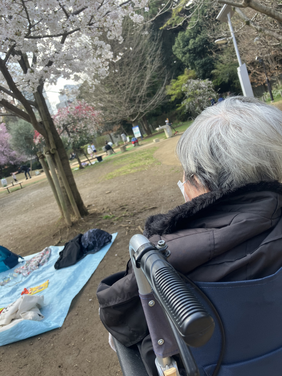 暖かくなり、施設前のどんぐり公園も桜が満開です