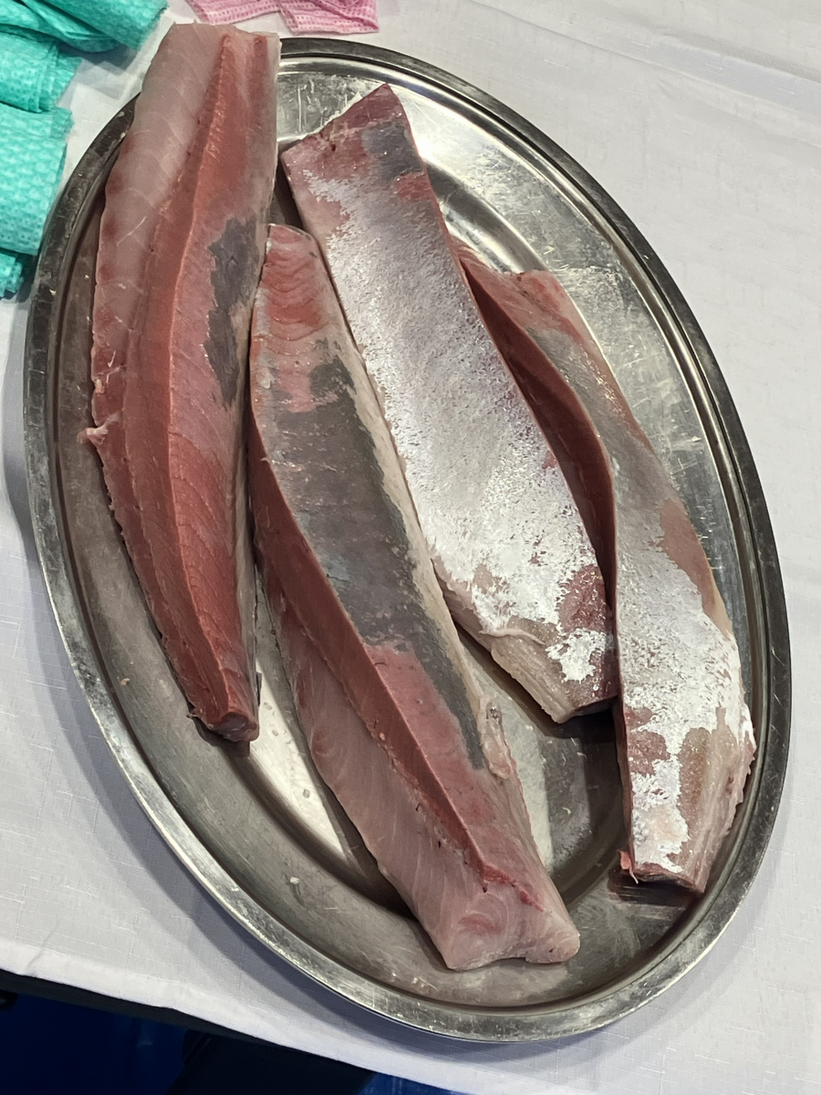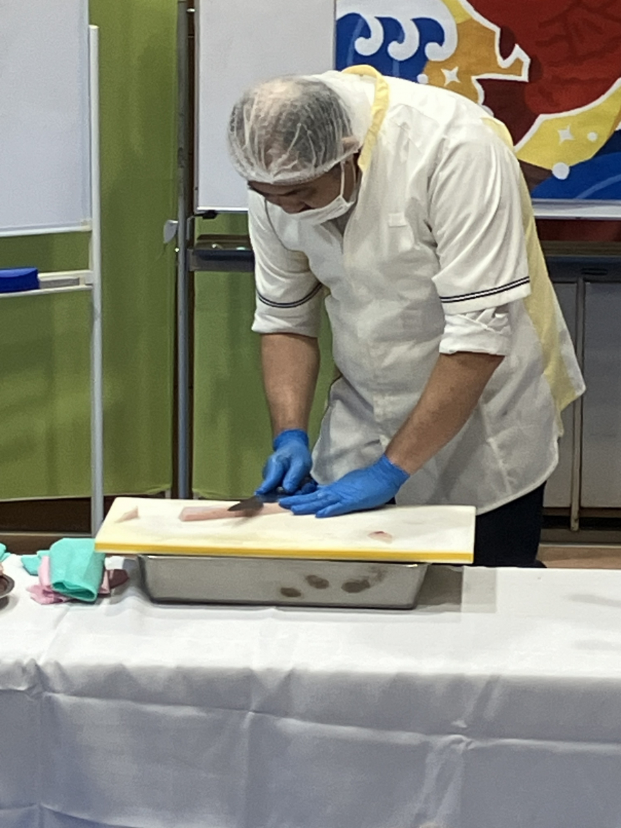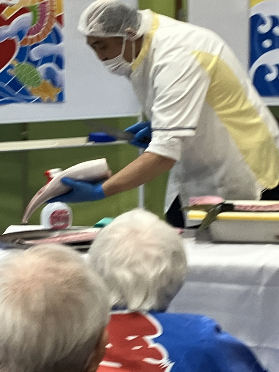 厨房の職員が捌いている手捌きをみて歓声を上げたり拍手をされる様子が見られてました。