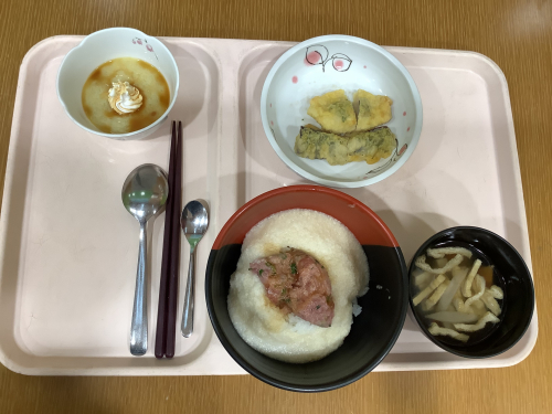 2026年4月1日(水)は「ねぎとろ丼と天ぷらセット」にちなんだお食事を提供いたしました!