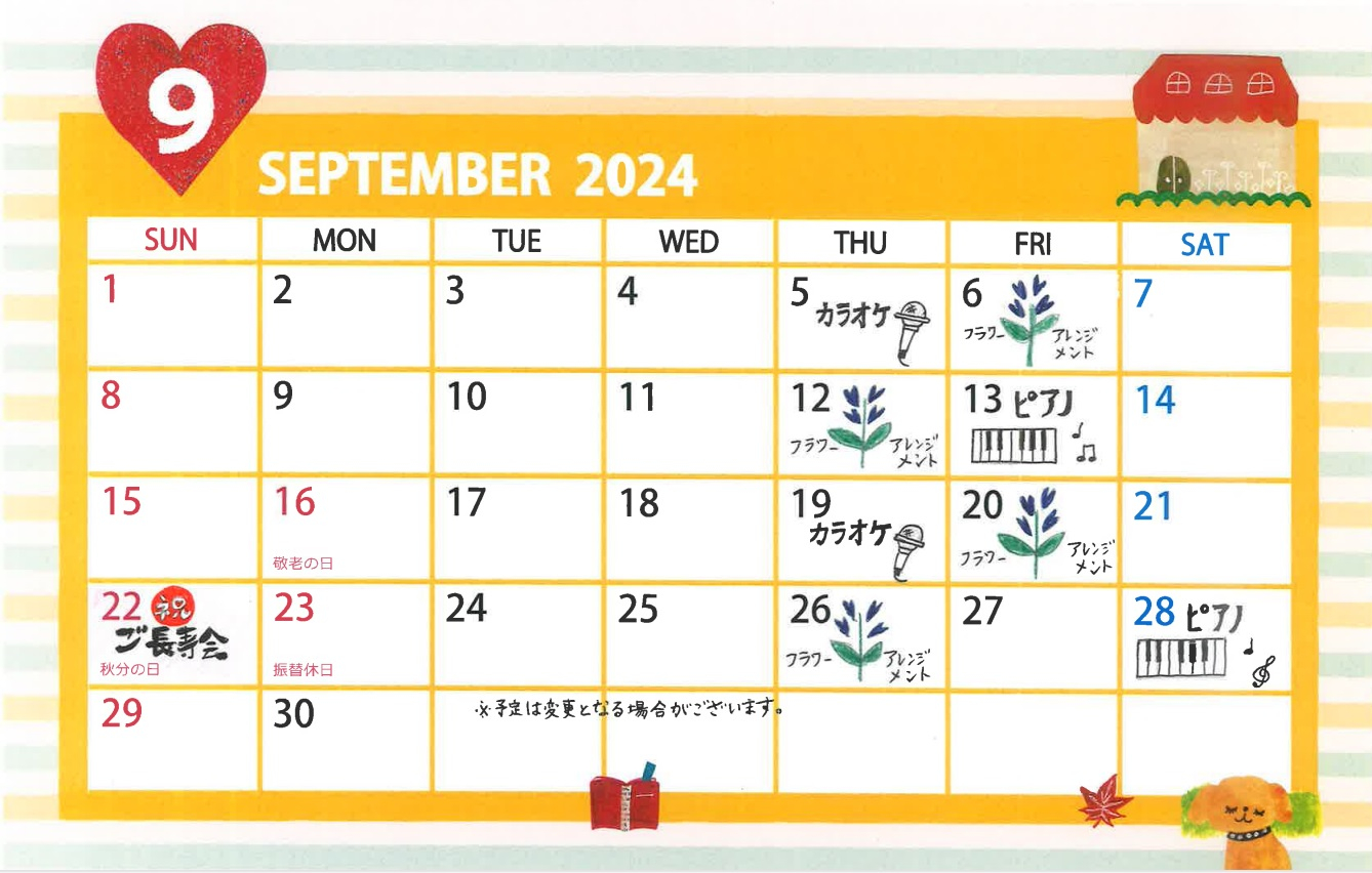 ピアノ生演奏やカラオケといった参加型イベントや、少人数フラワーアレンジメントの体験型レクリエーションを予定しています。