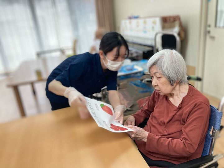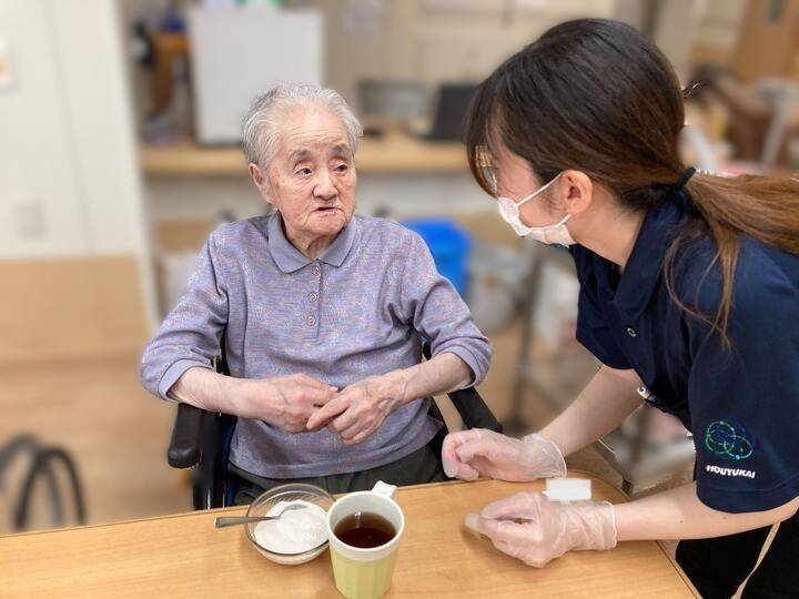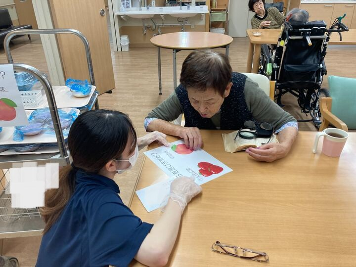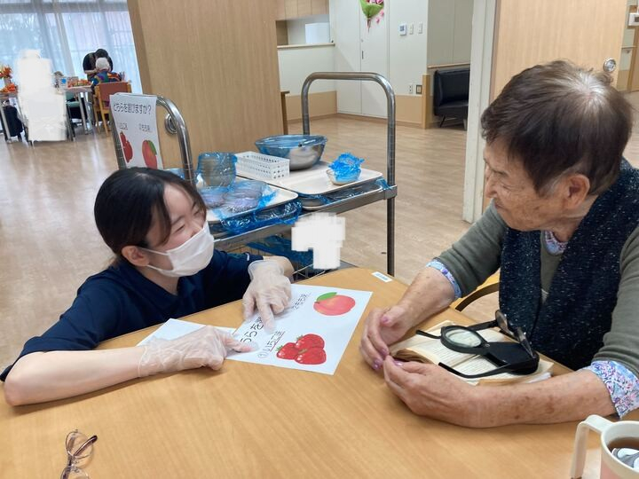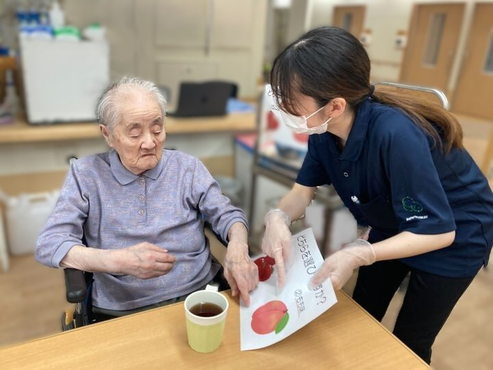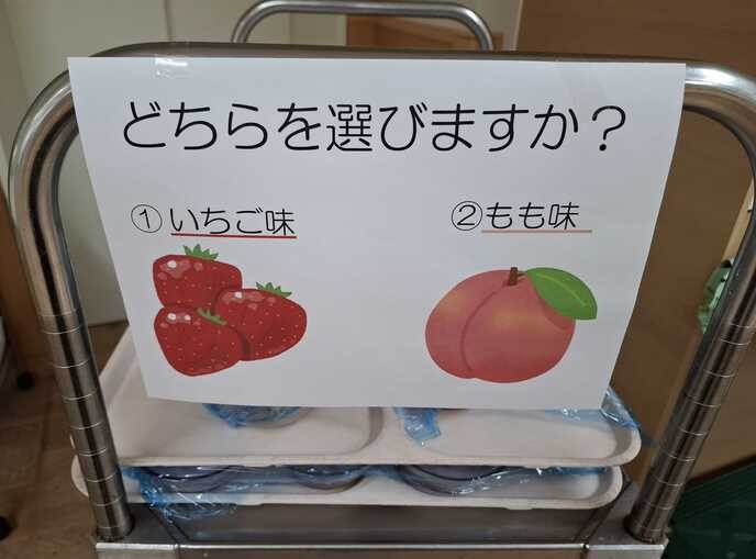 いちご味ともも味の2種類のデザートを用意し、ご利用者様自身に食べたいお味を選んで頂きました・