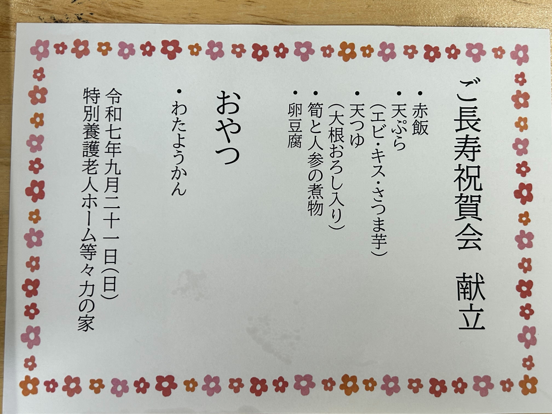 まずは、ご長寿祝賀会の献立です☆