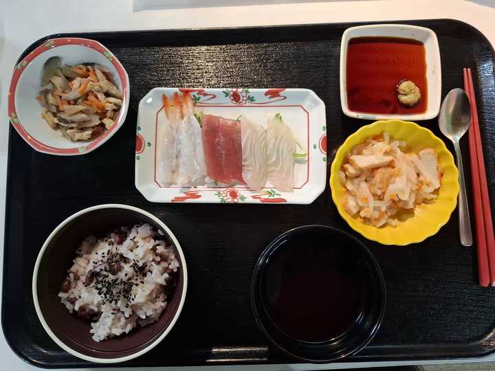 本日は小正月ということで、昼食に赤飯とお刺身を提供しました。