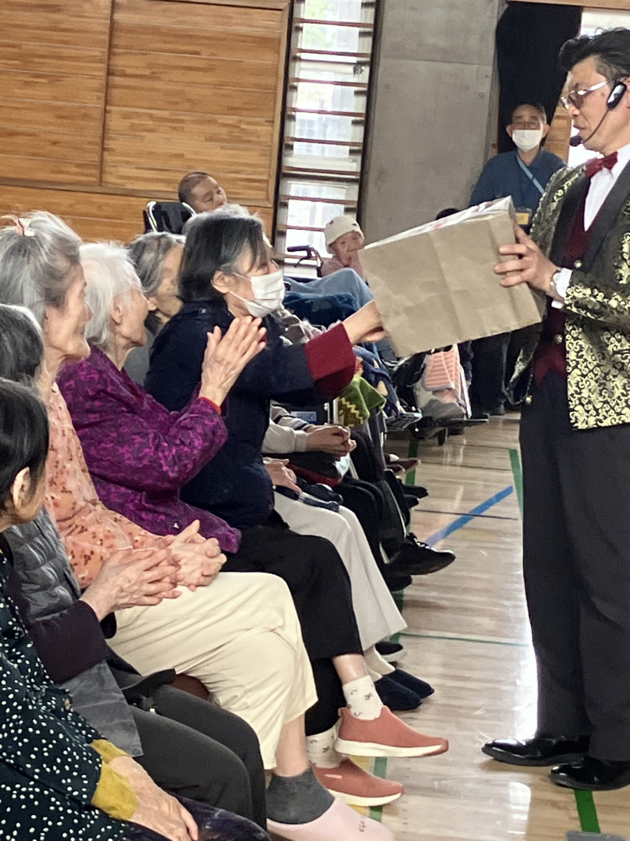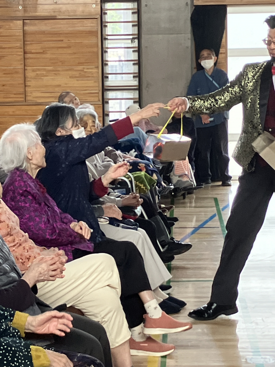 2026.04.18 活動報告 マジックショー Tweet シェアする 袋の中には何が入っているのかな? プレゼントが出てきて利用者様が驚いていますが、楽しそう。 前の記事 2026.04.18 活動報告 マジックショーその② 次の記事 2026.04.18 活動報告 【予告】ケアビューティー 一覧へ戻る