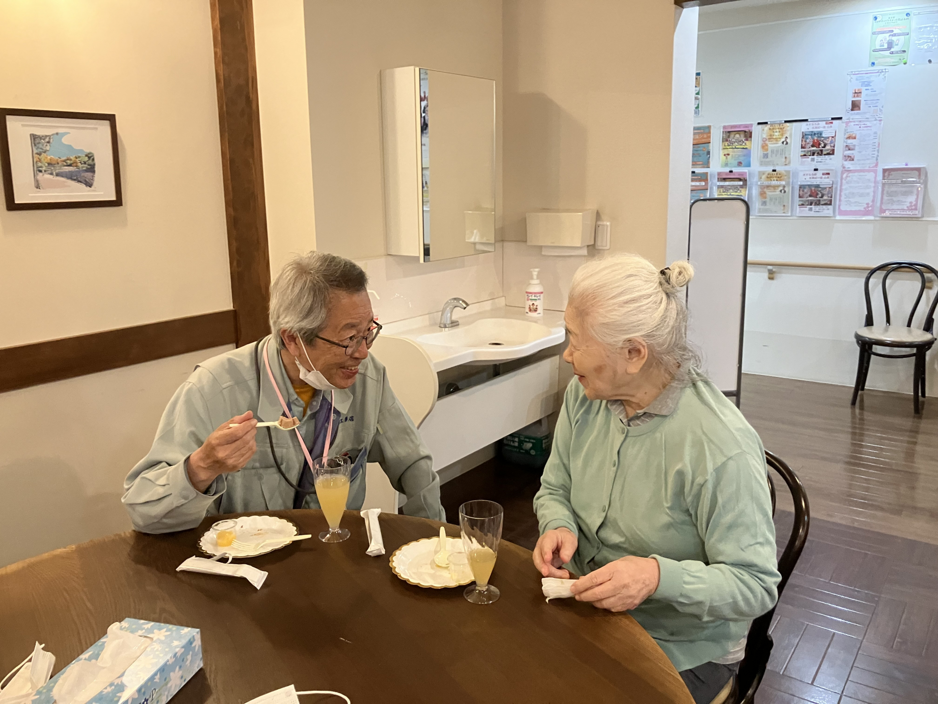 本日の喫茶店レクリエーションでは、ご家族様にもご参加いただき、久しぶりに親子で食事を楽しまれる姿が見られました。