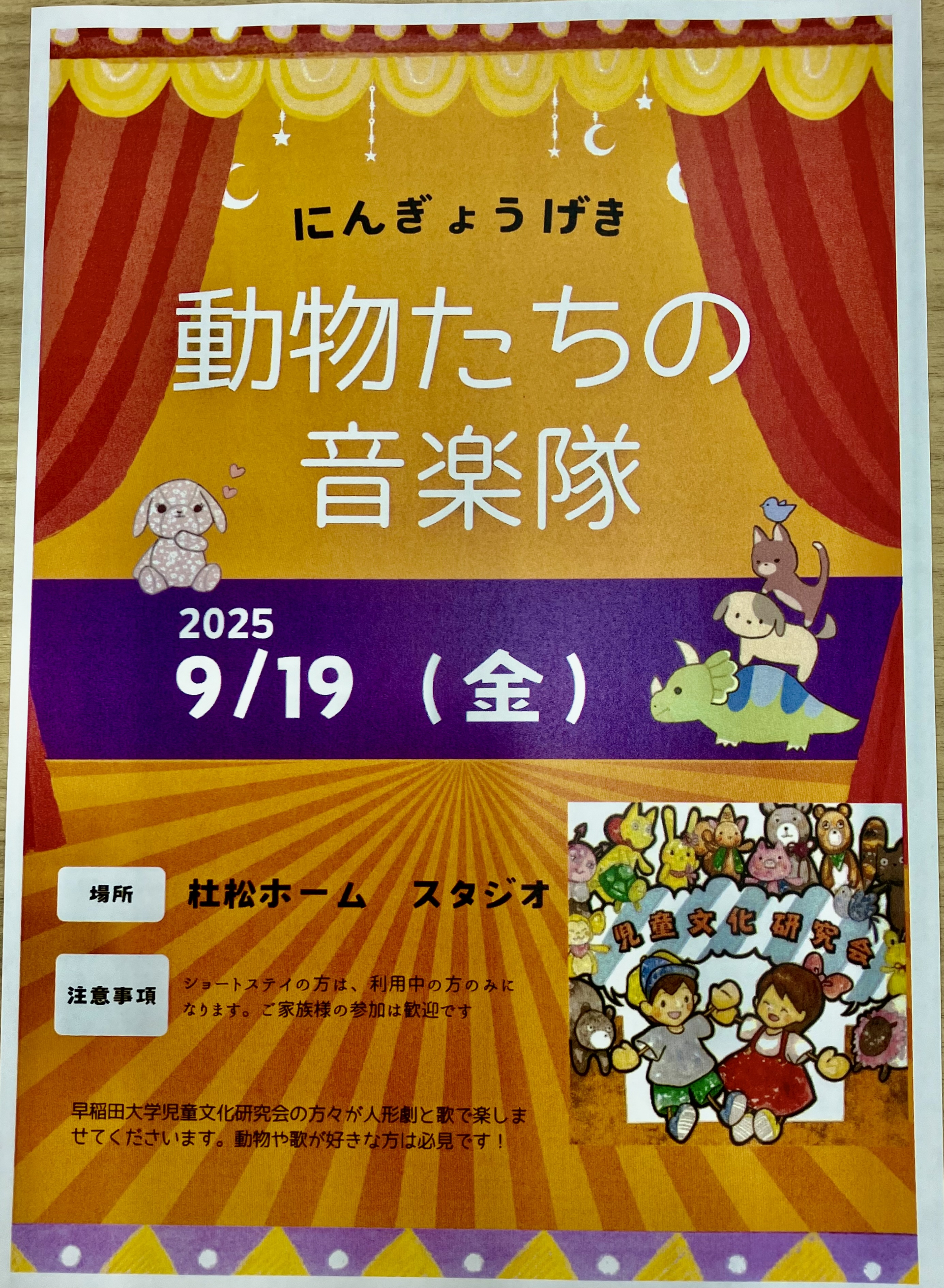 ご縁があり、早稲田大学児童文化研究会の方が初の高齢者様への公演をして下さるという事で、杜松ホームに来てくださることになりました~(⑉>ᴗ<ノノ゙✩:+✧︎⋆パチパチ