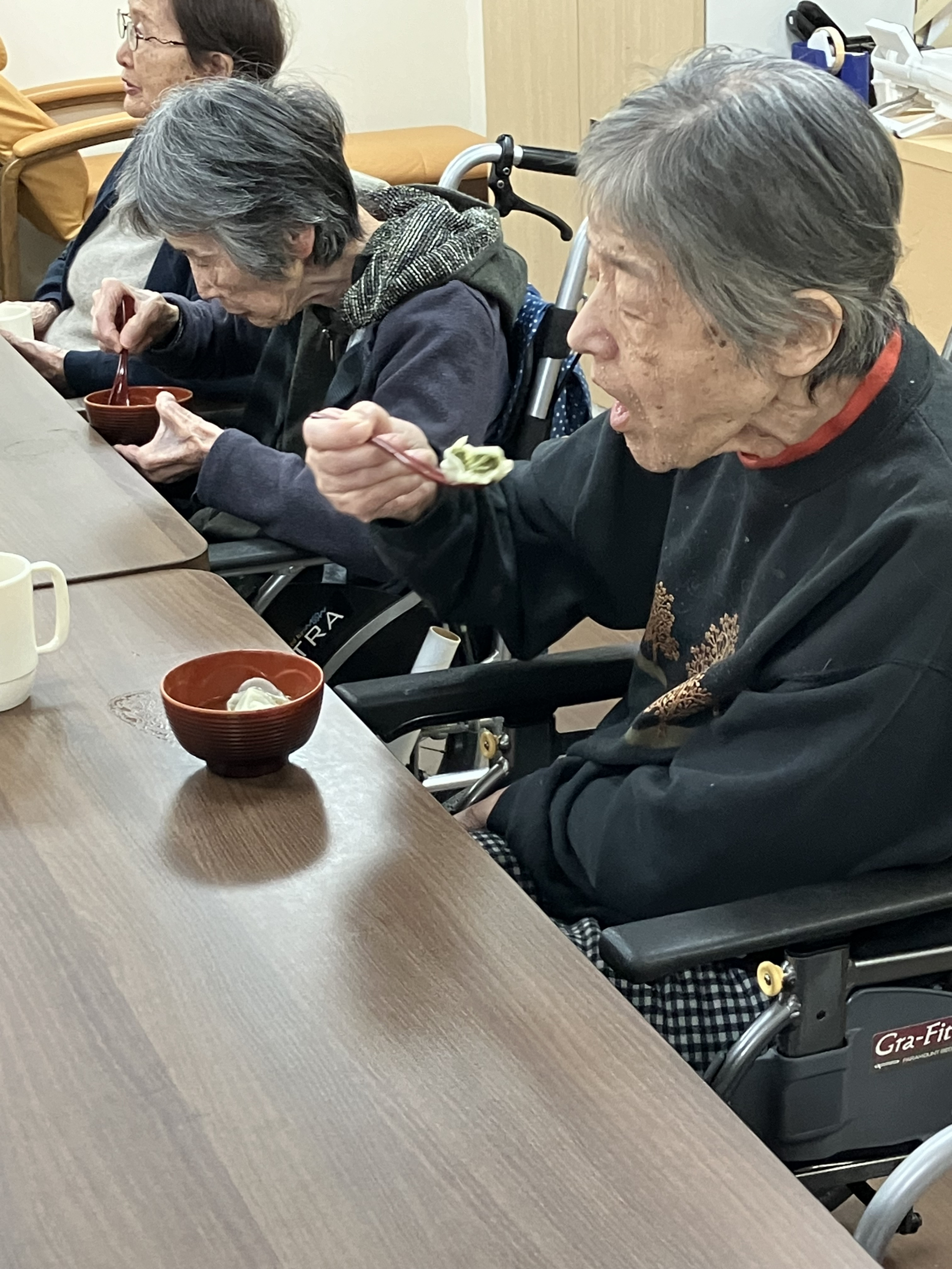 「味の濃さがちょうどいいですね~」と話すと「そう、ちょうどいいわね~」とお椀の底に残ったものも綺麗に召し上がっていました