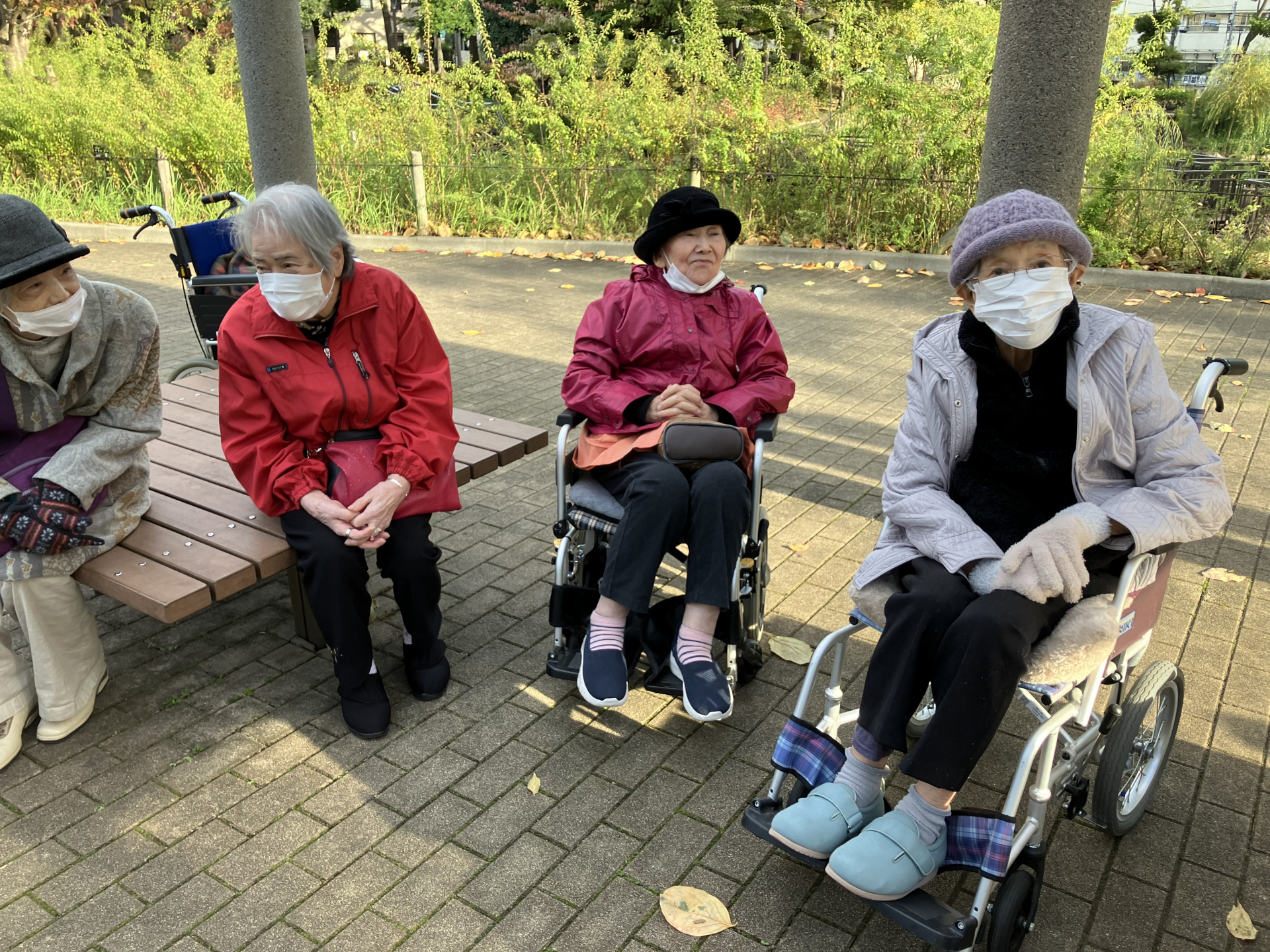 みなさん、集まって紅葉を見ながら、ひなたぼっこをしたり