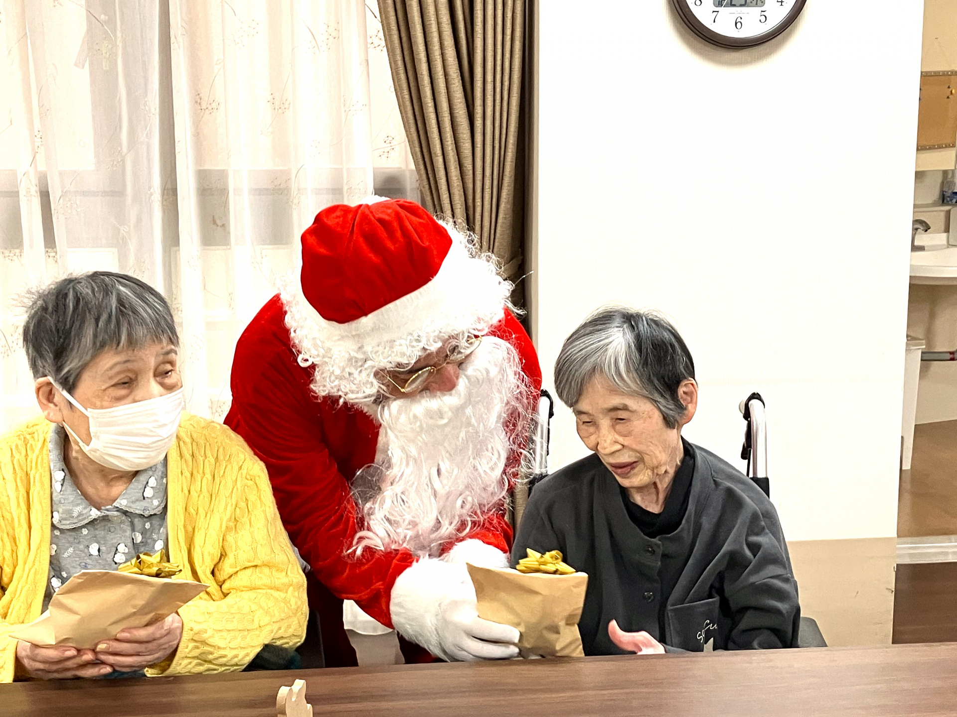「みんなにプレゼントは渡ったかな~」サンタさんの掛け声にプレゼントをあげてお応えされていました