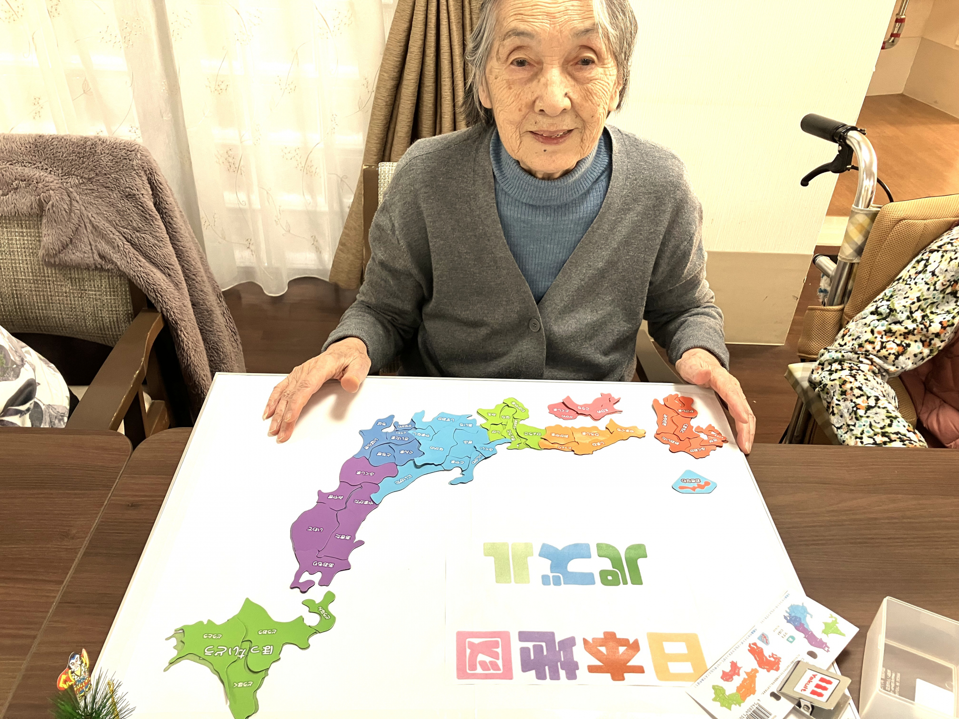 少し前にマグネットの日本地図でパズルを作ったのを、やっとショートステイにお披露目いたしました