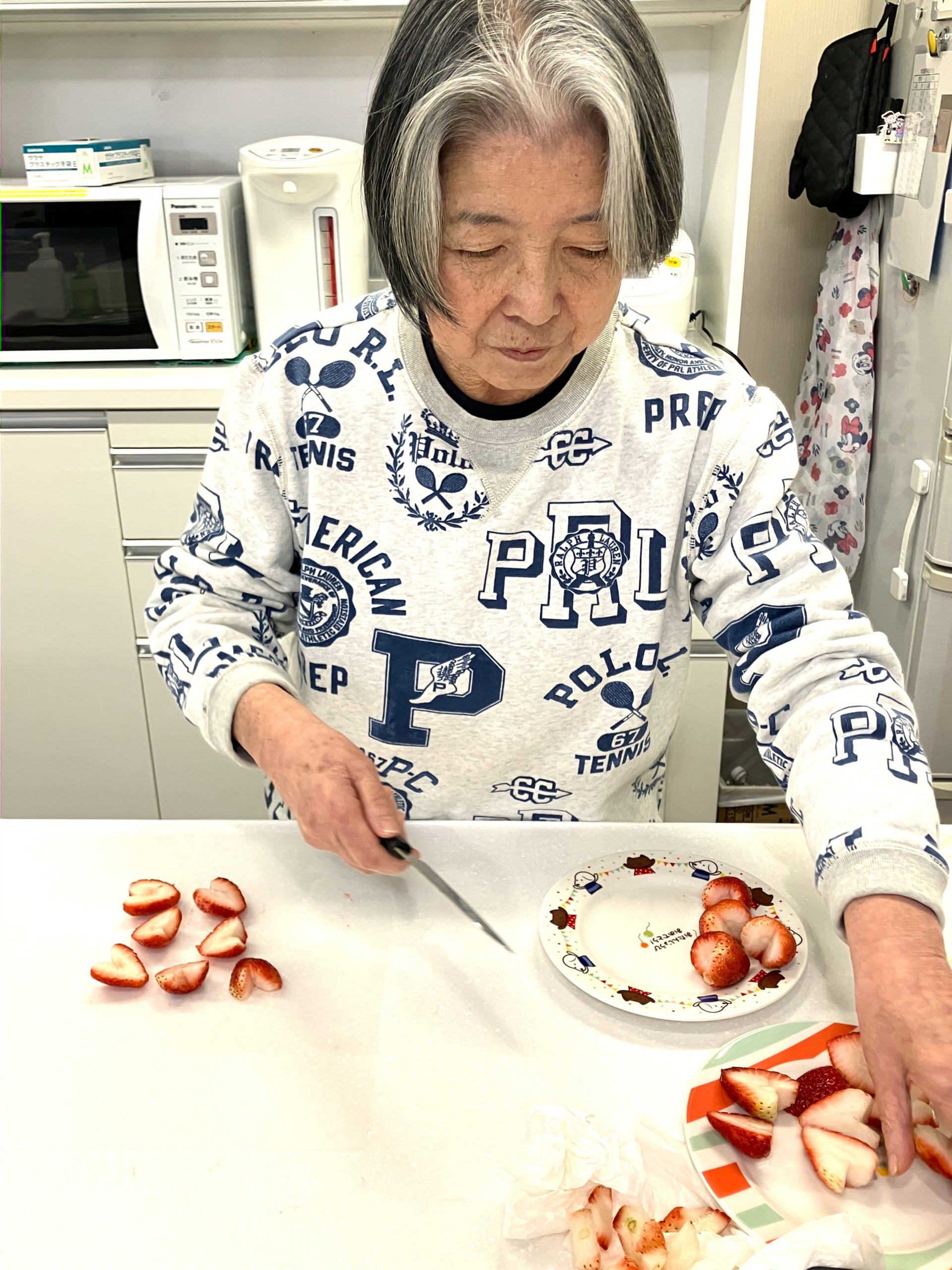 イチゴをかわいく、ハートにカットしています