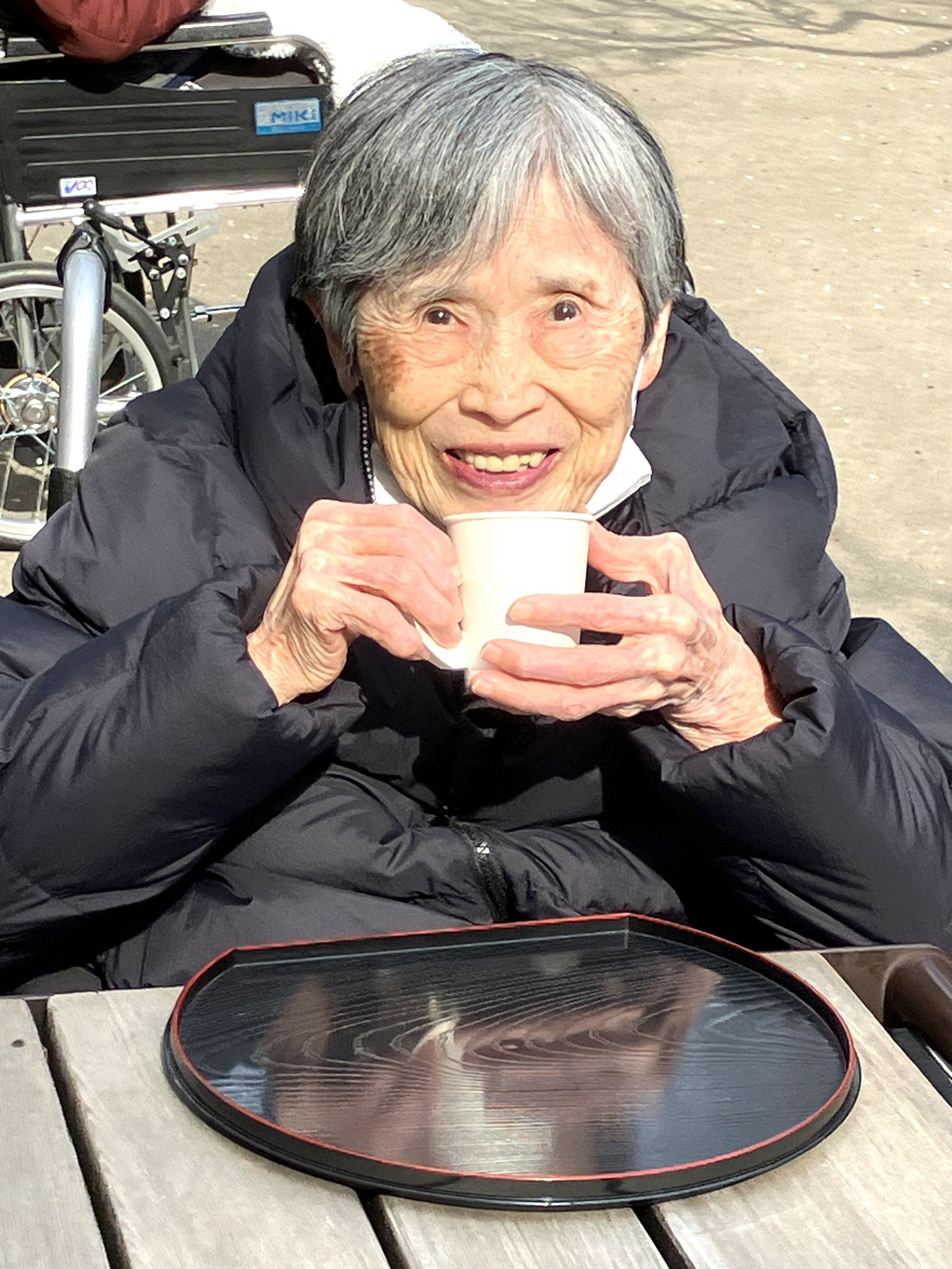 すっごく、嬉しそうに甘酒を飲まれている利用者様