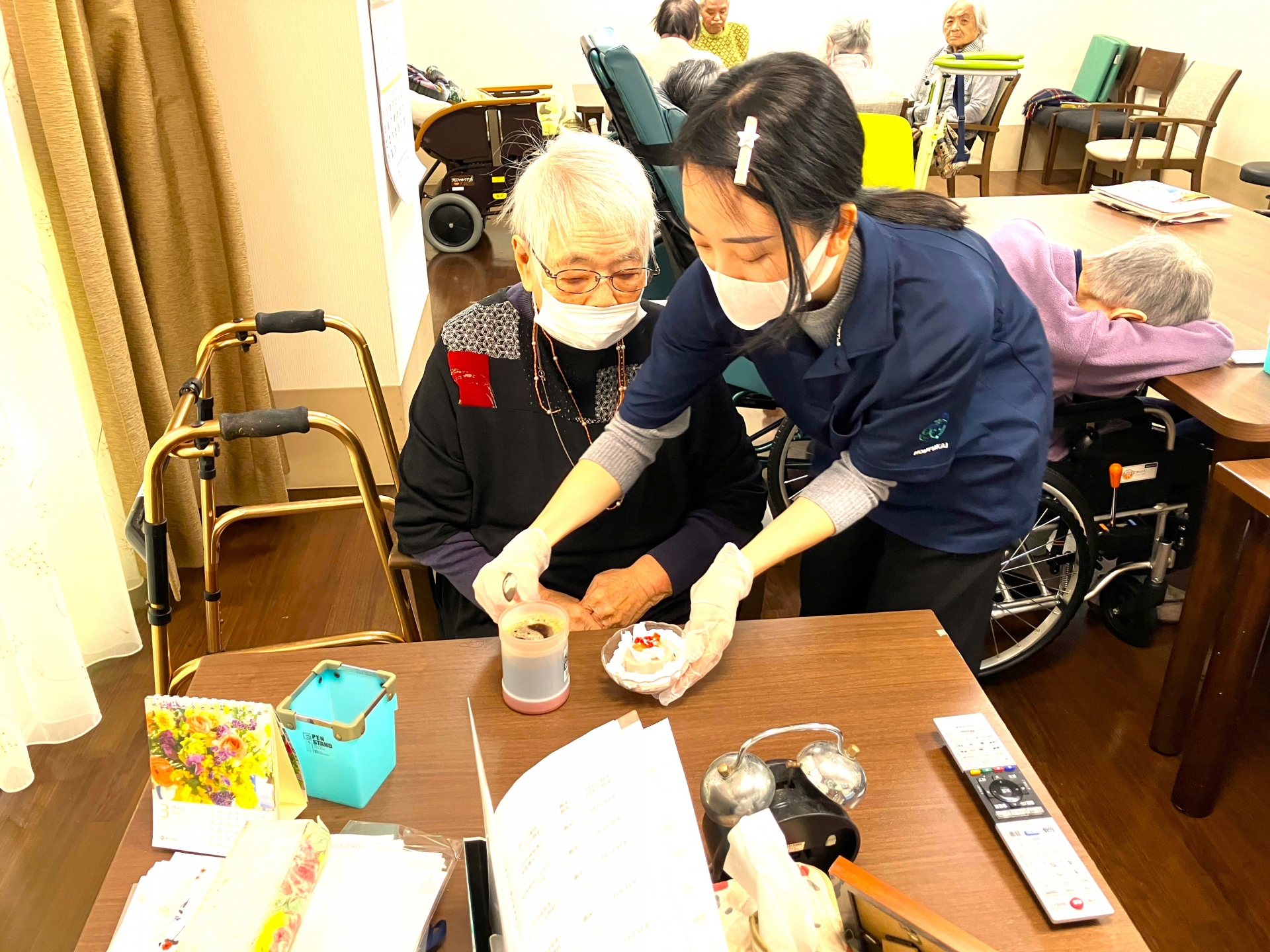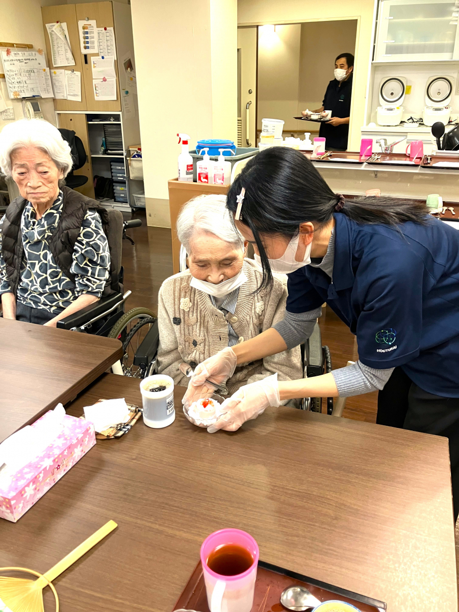 デザートを出されると「あら!かわいい」と笑みを浮かべてました