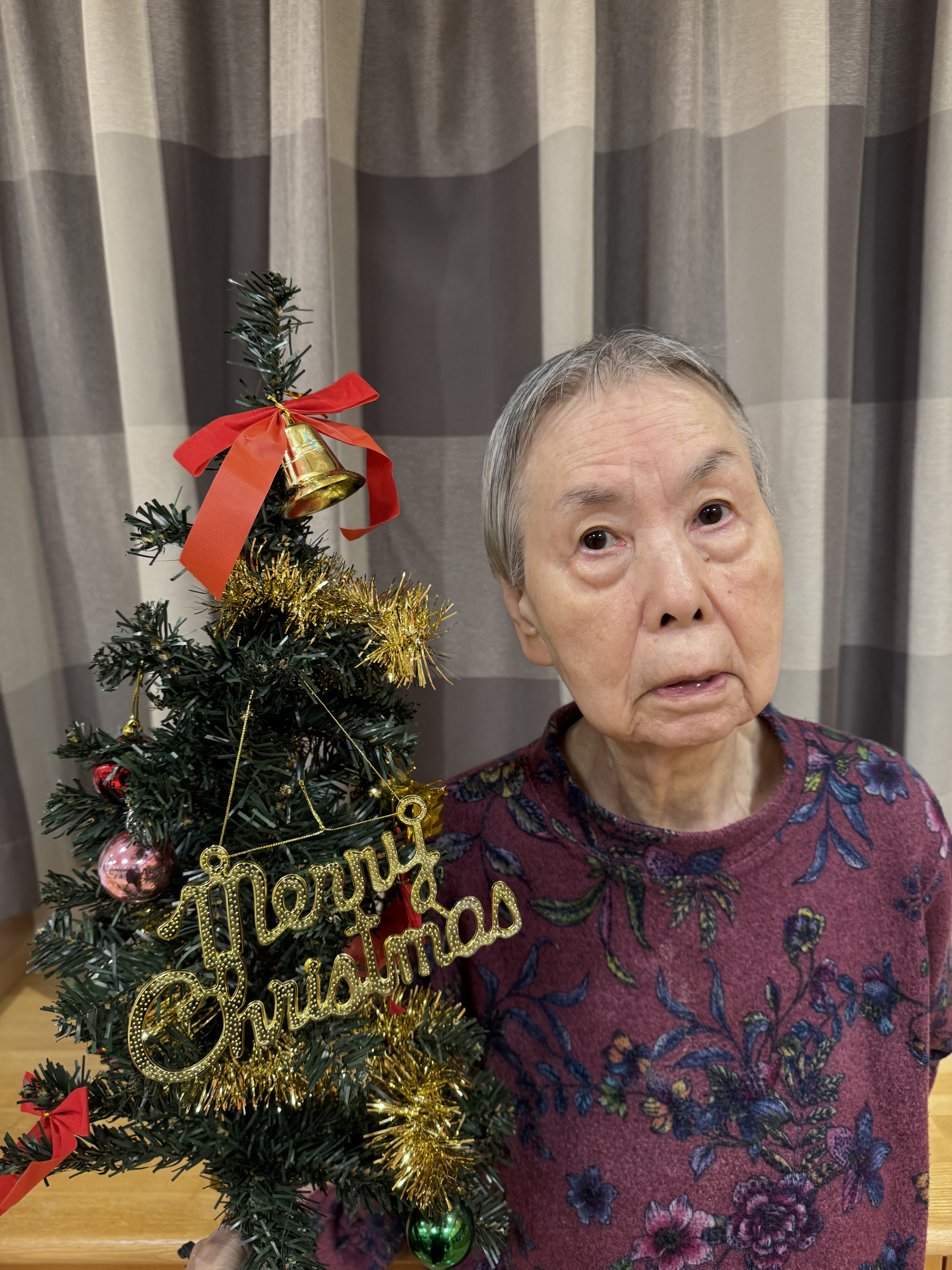施設内とユニット内にも美しいクリスマスツリーや華やかな飾り付けで彩られ、