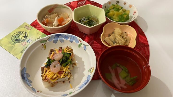 3月3日には、ひなまつりということでちらし寿司とお雛様の和菓子を提供しました。