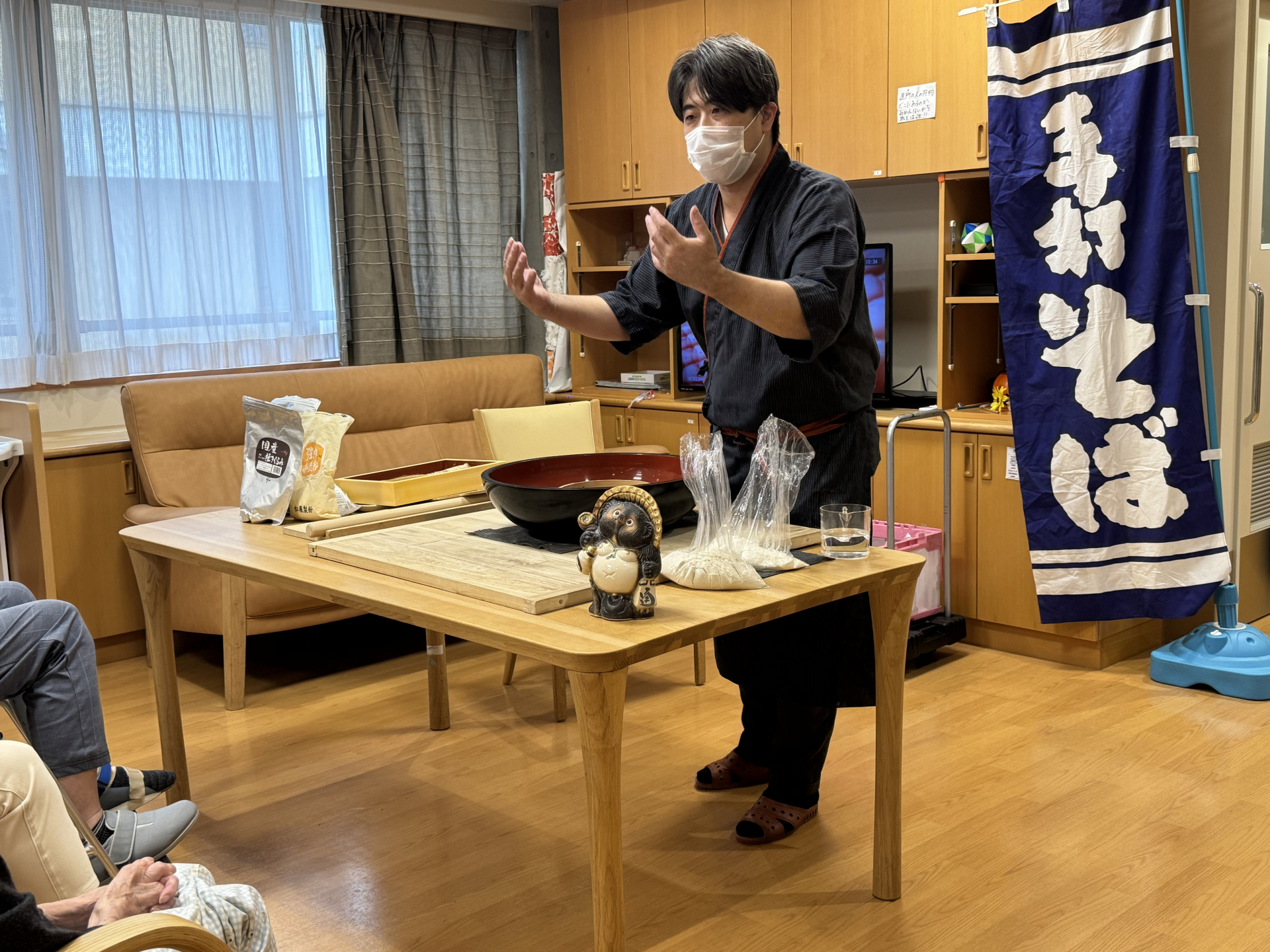 ショートステイでは、利用者様に季節を感じながら楽しんでいただける企画として「そば打ち体験 第2弾」を開催しました。