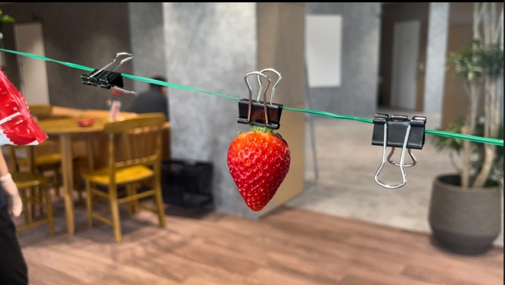 イチゴをクリップで留めて、イチゴ狩りを演出。