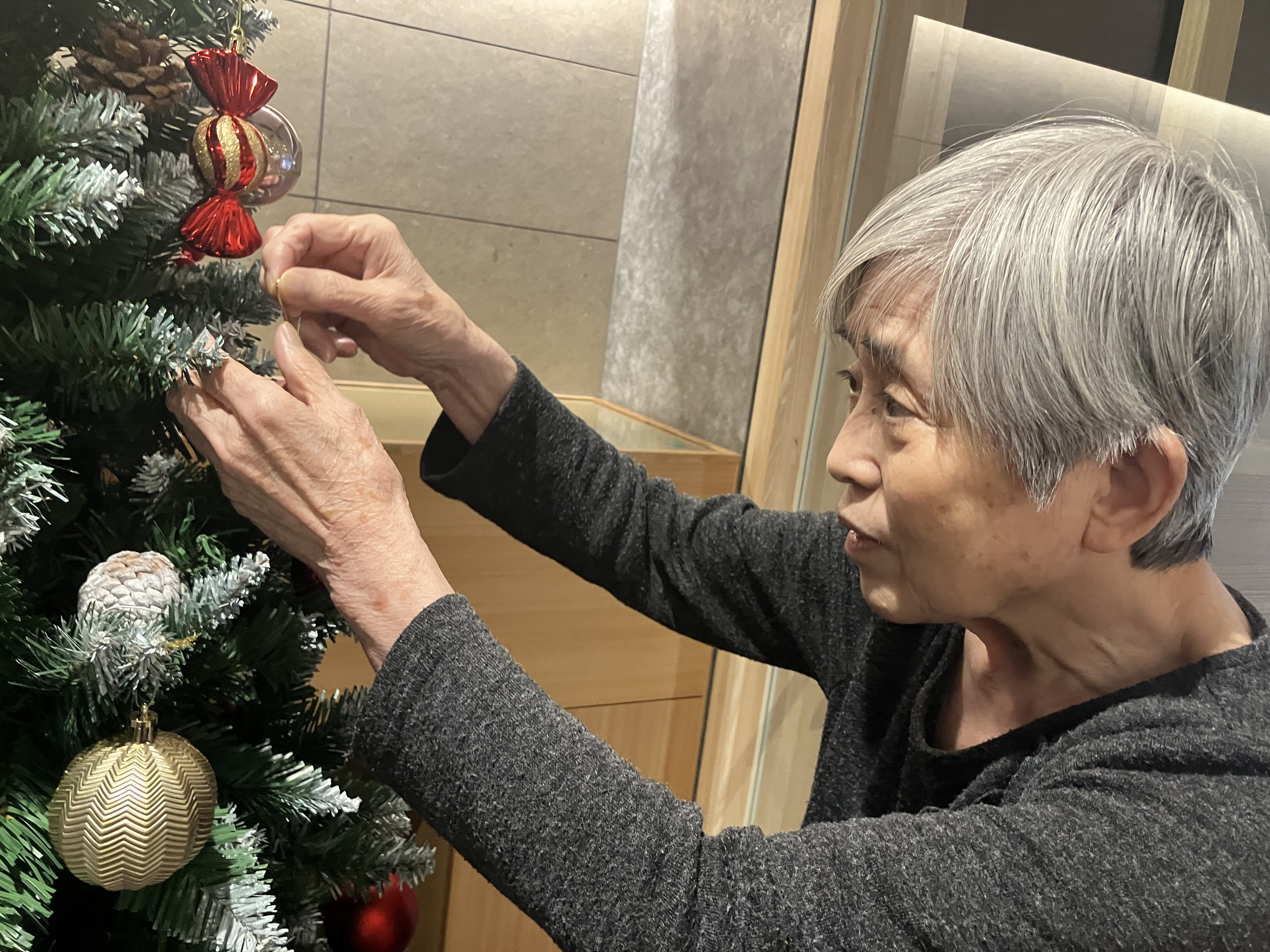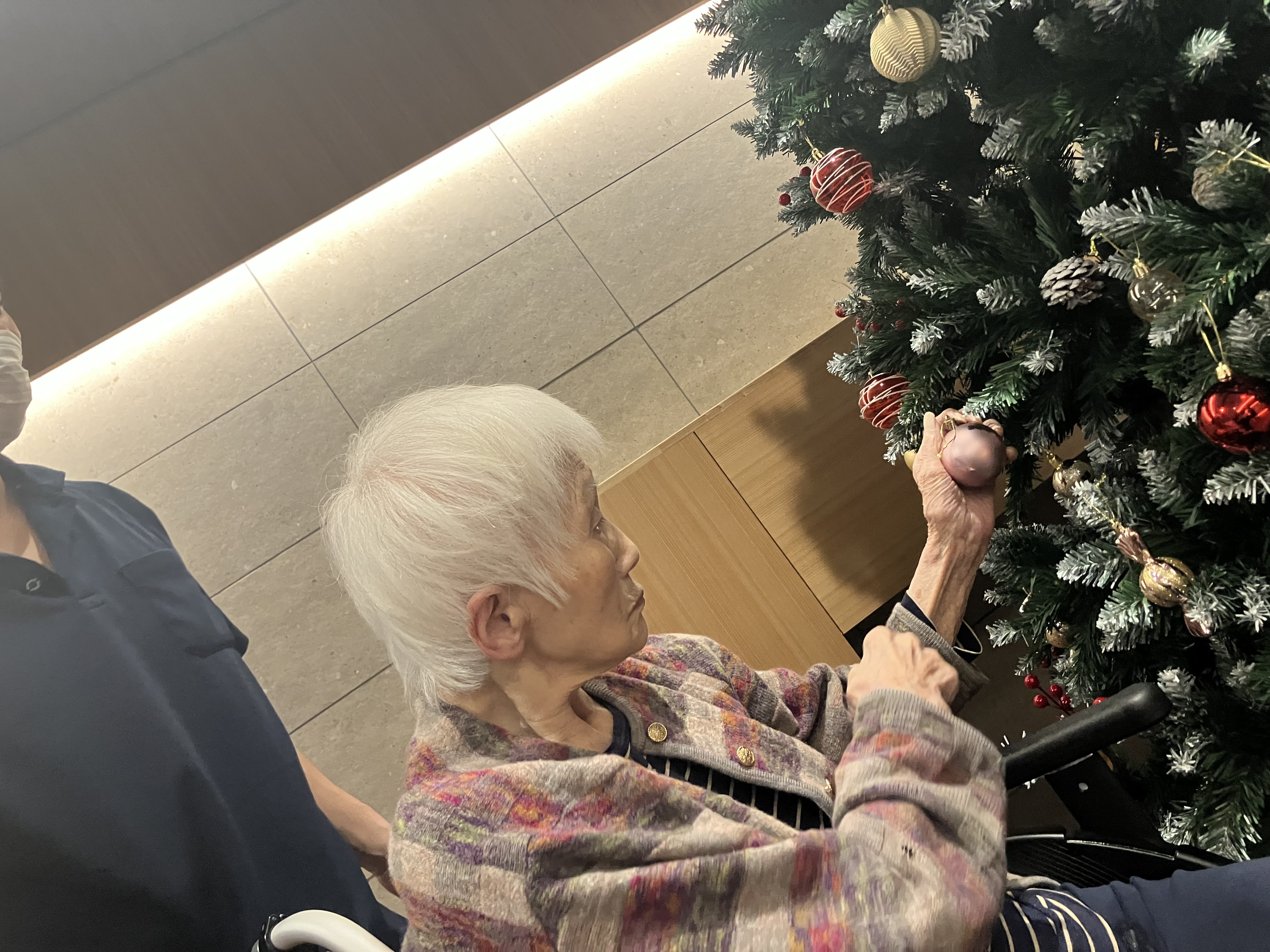 クリスマスツリーの準備が始まっていたので、飾りつけをお手伝い☆
