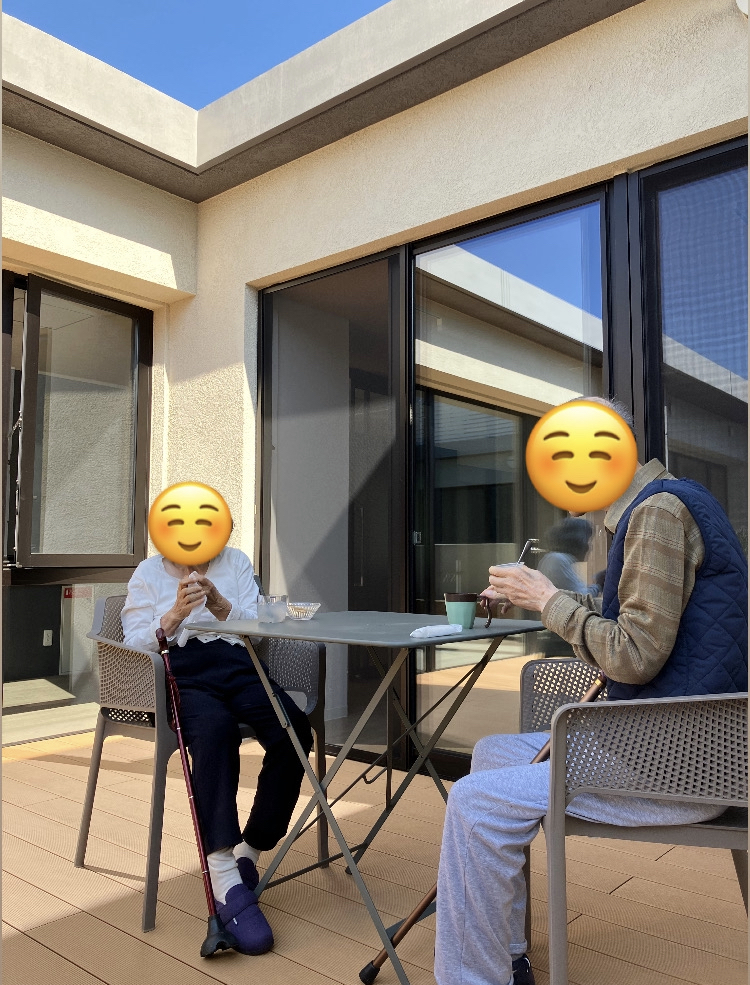 おやつもテラスで食べて、「青空が綺麗ですね」「気持ちがいいなぁ」と喜ばれていました♡