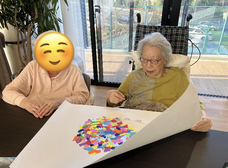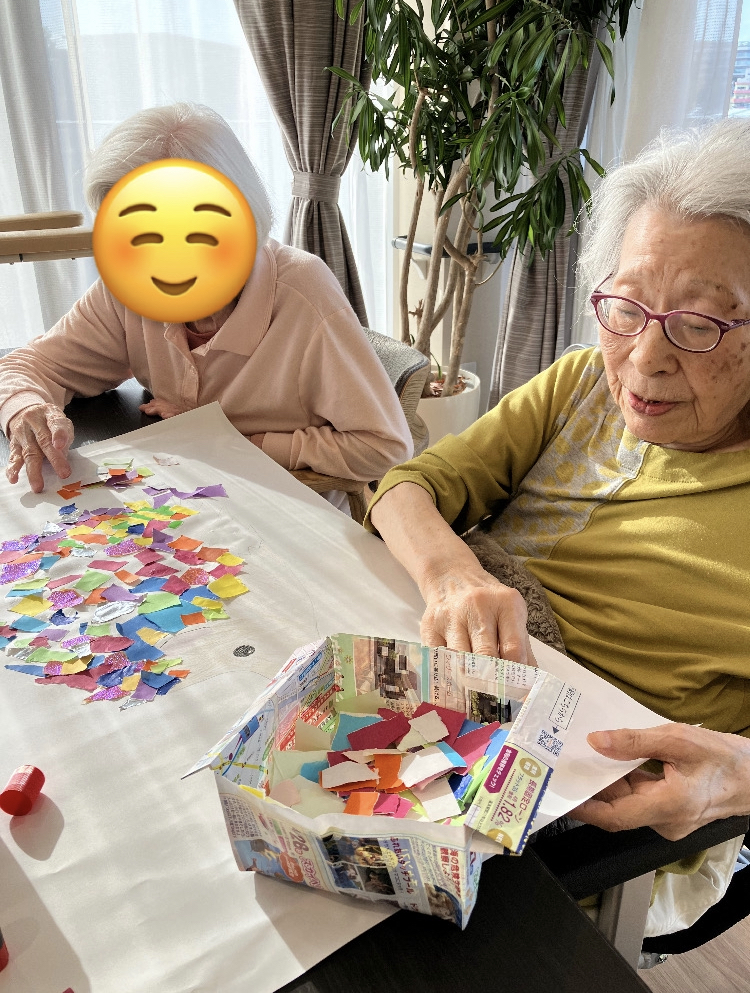 色とりどりの折り紙をちぎるのは意外と大変ですね。指先が鍛えられました^_^