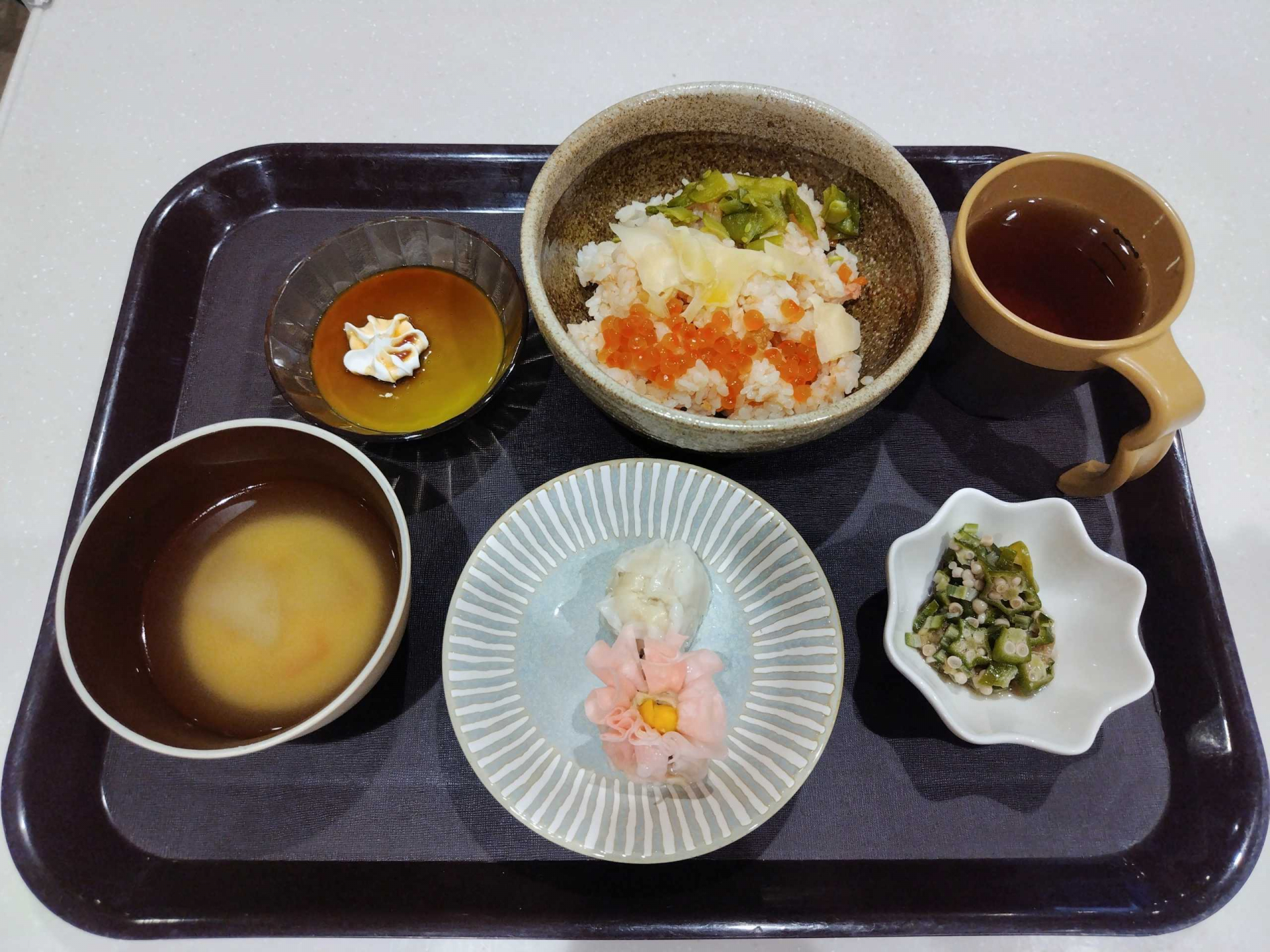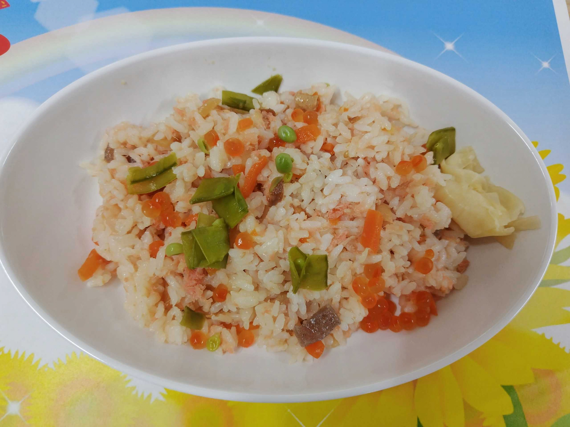 できました♪入居者様にオープン記念メニューで鮭の混ぜ寿司を提供しました。