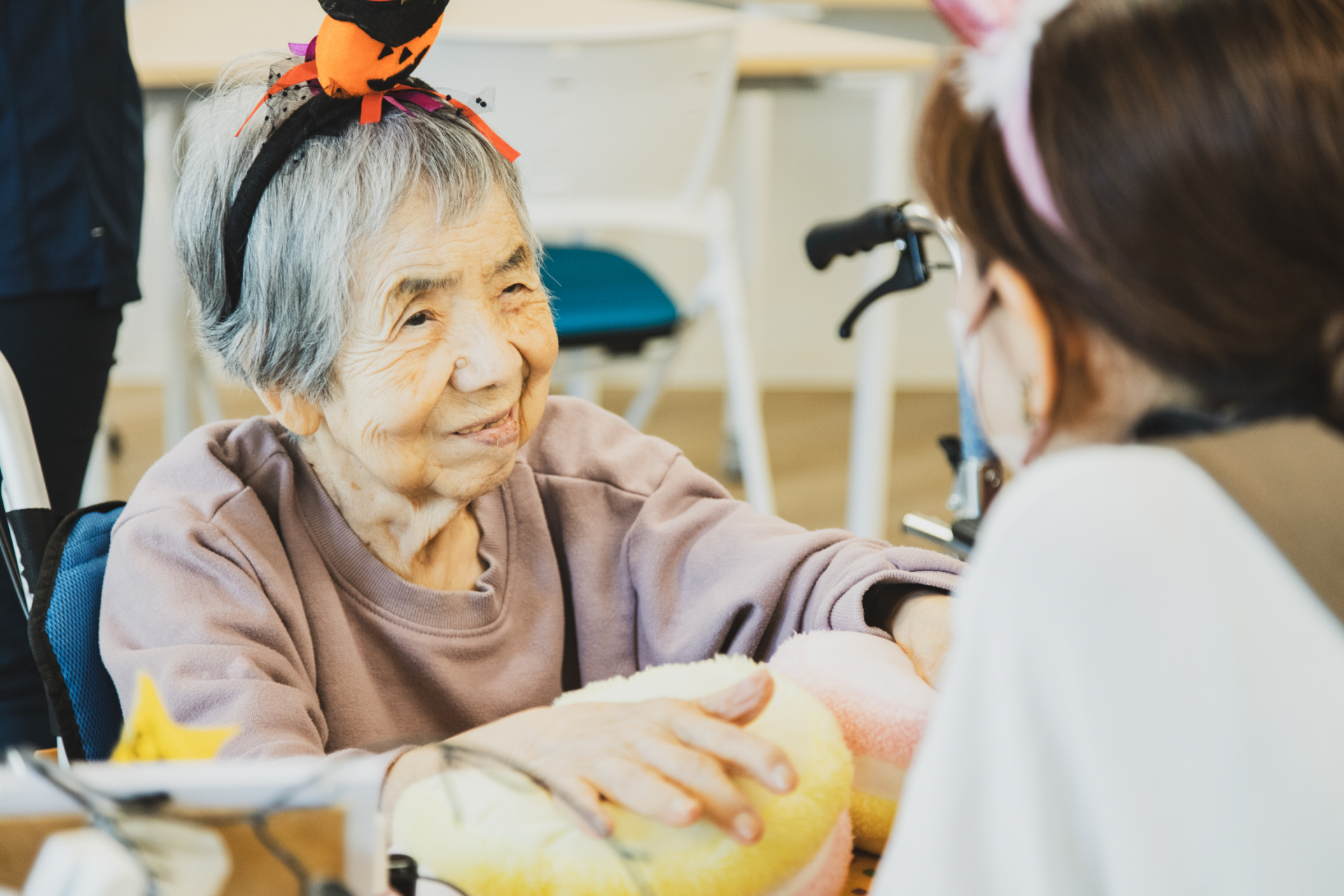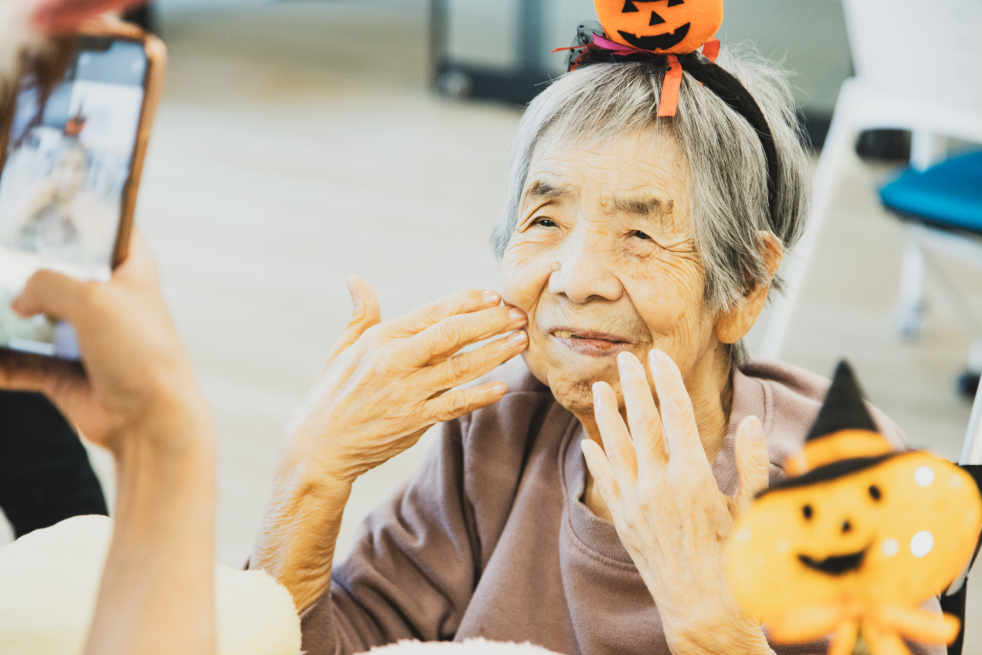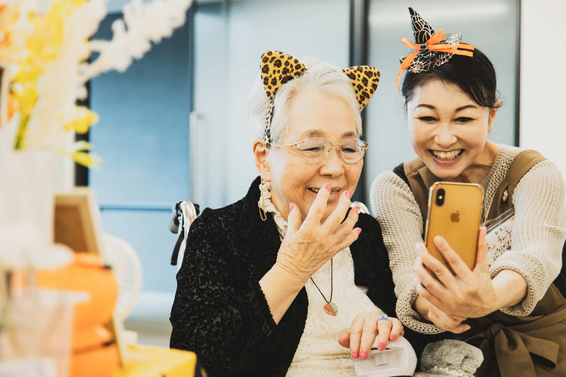 ハロウィンのカチューシャをつけて完成後は一緒に記念撮影!