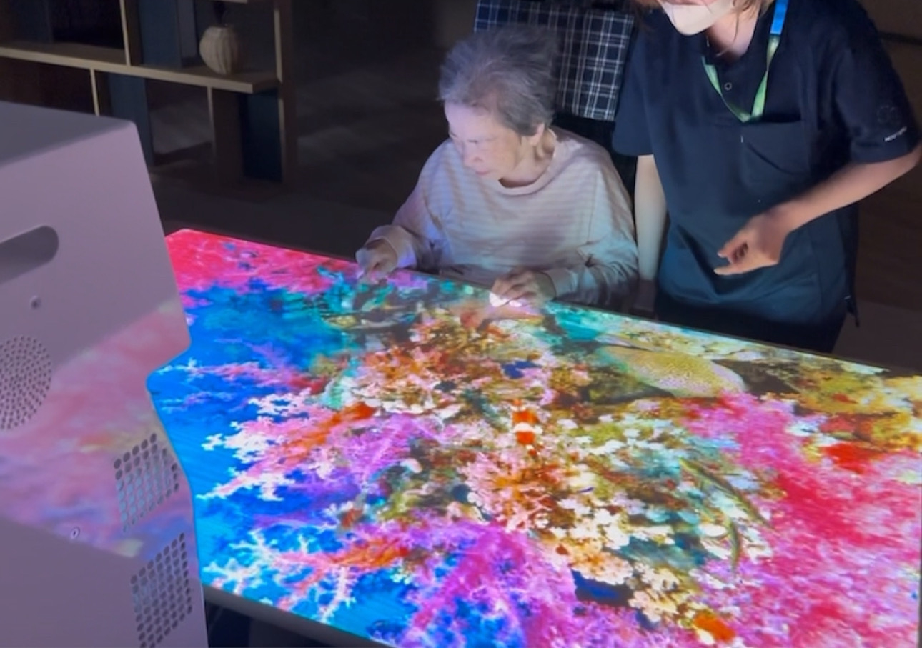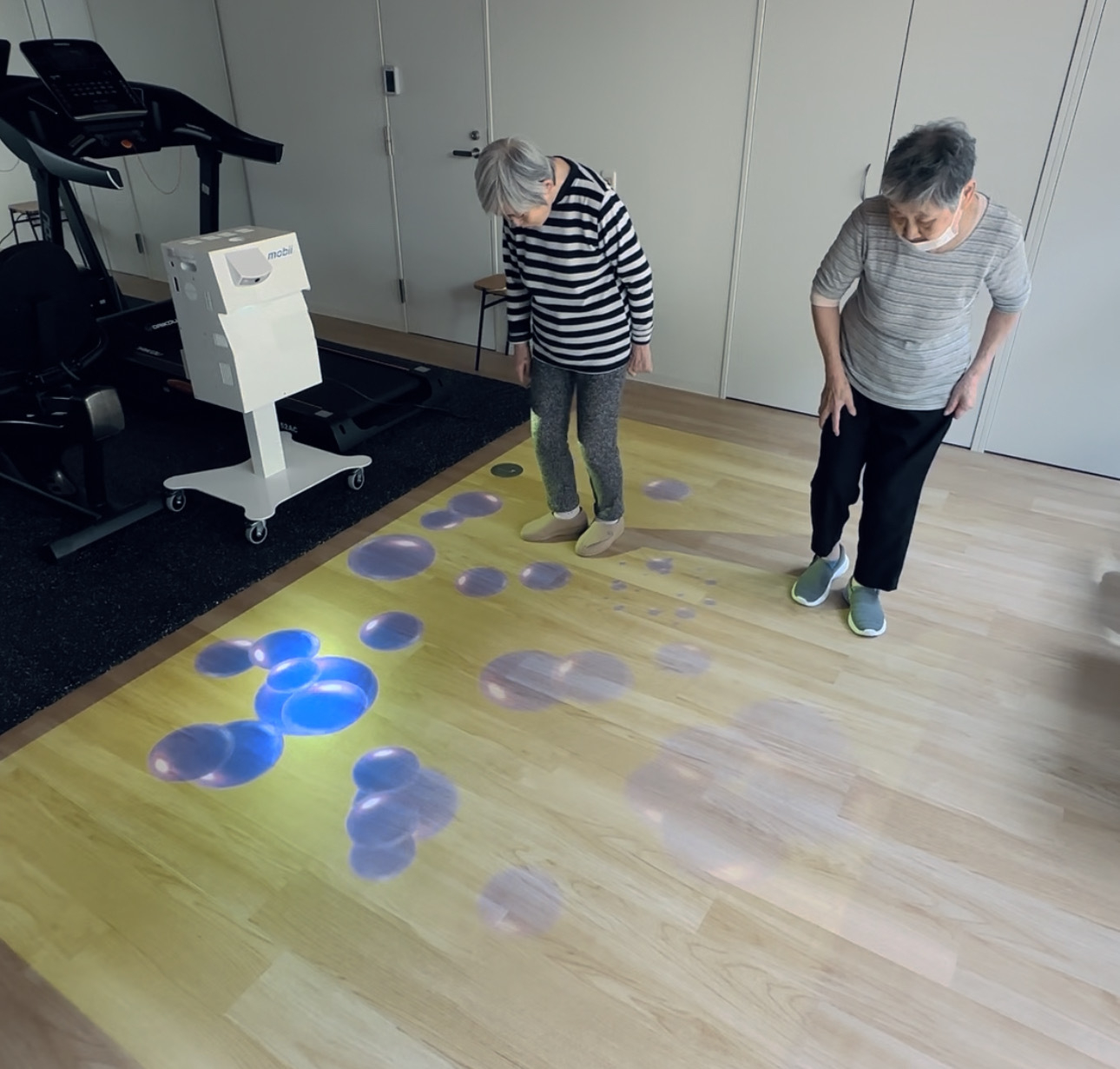 映像を床や机に投影し、潜在能力に働きかけ楽しみながら身体を動かすことができる機械になっております!