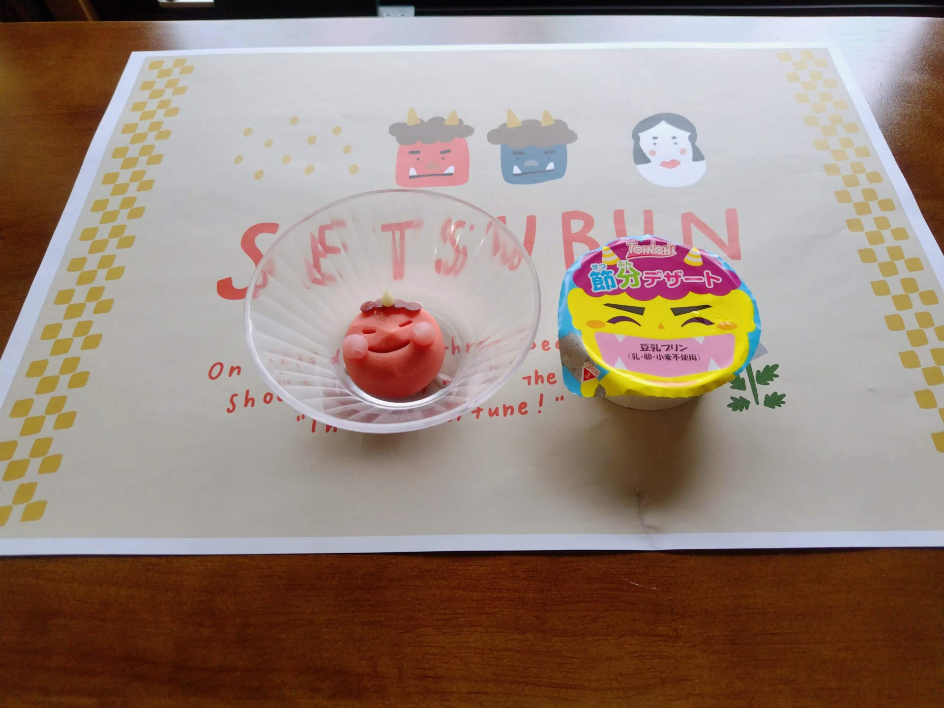 当日は食形態にあわせて鬼の練り切りと、鬼の豆乳プリンを提供しました。