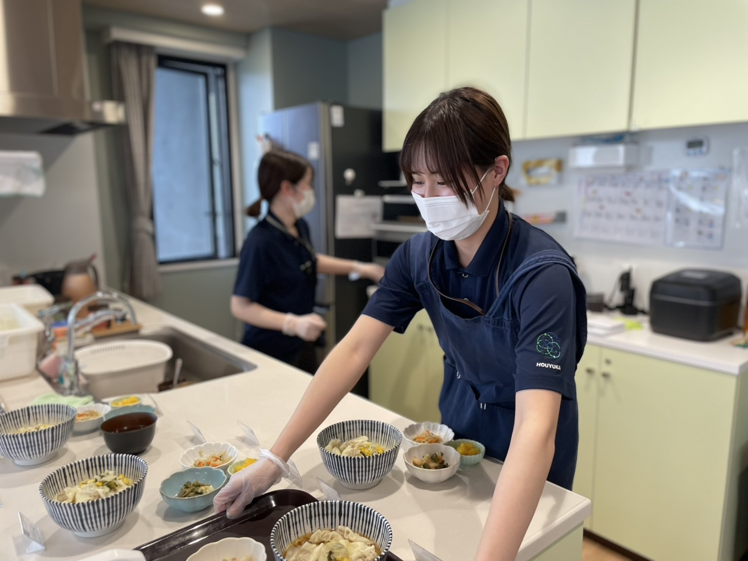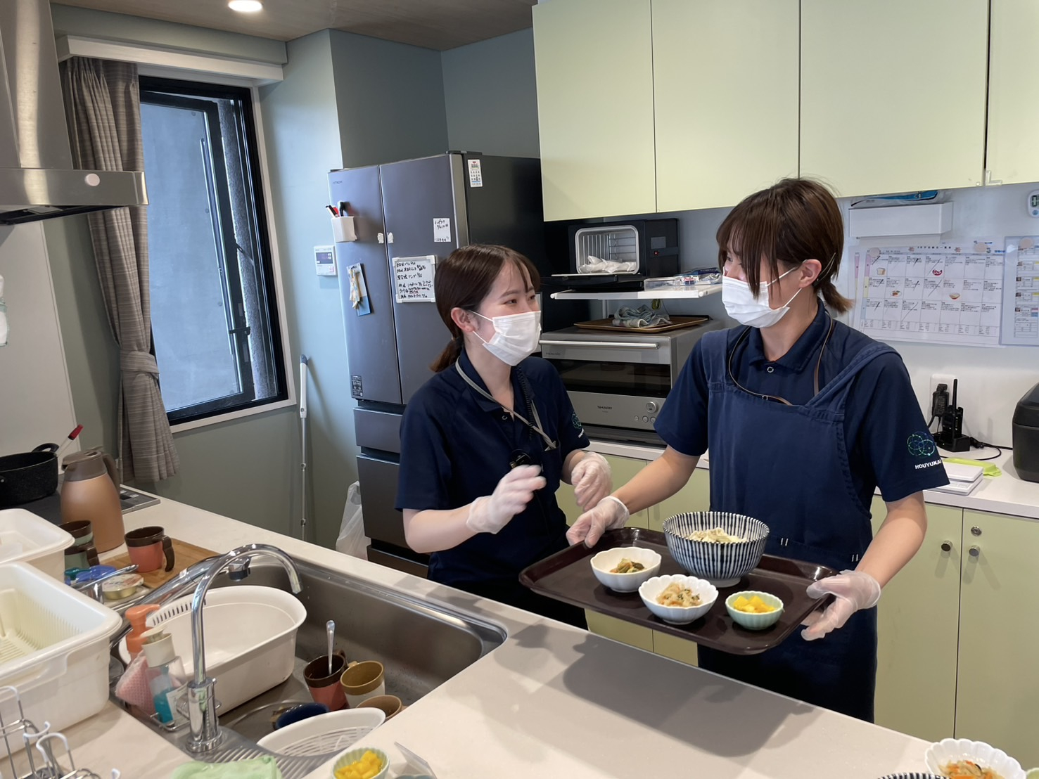 今日は、1年目の職員が先輩プリセプターと一緒に、食事の準備や配膳を学んでいる様子をパシャリ📸