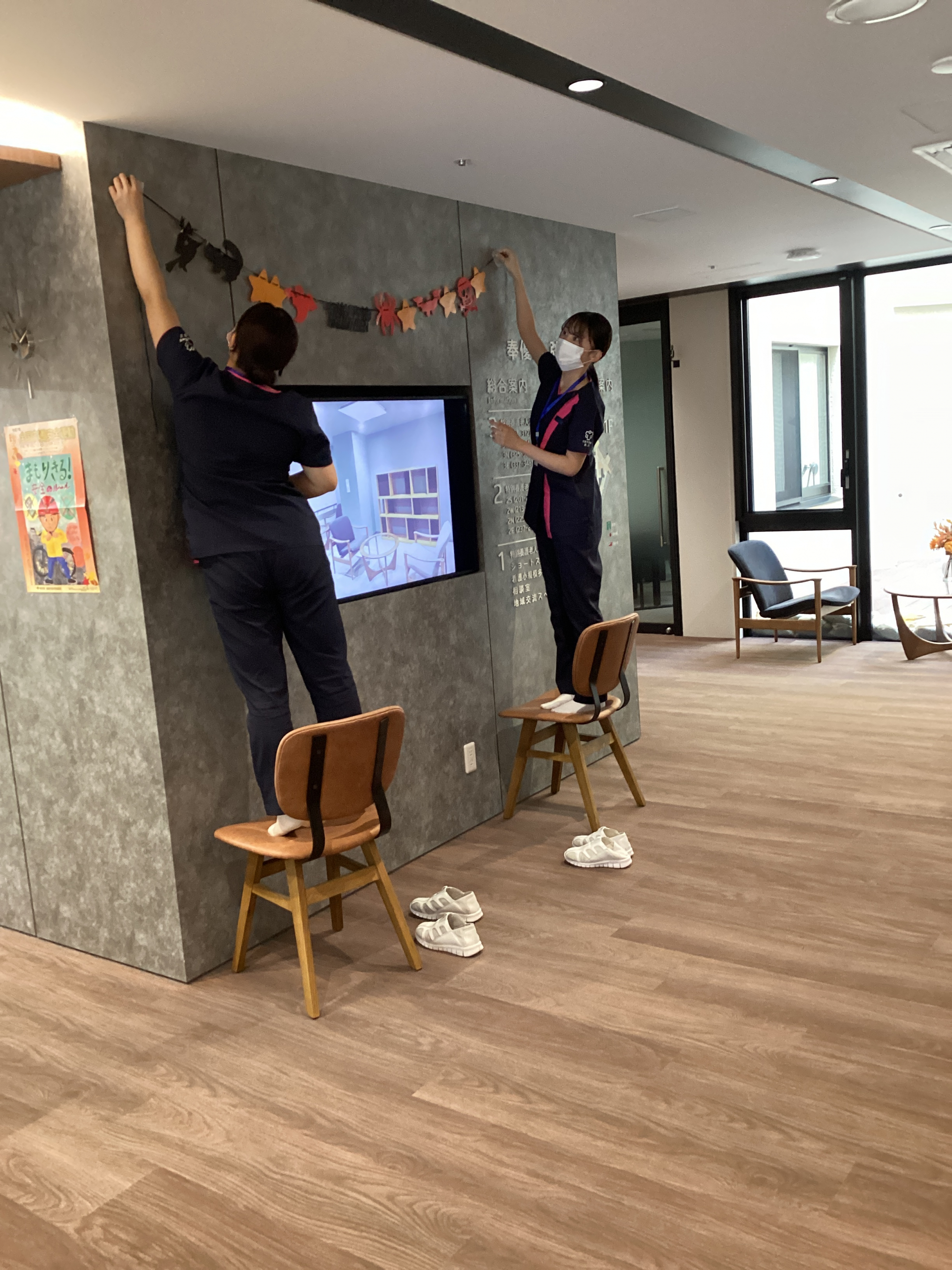 2025.10.08 活動報告(IN) ハロウィンの季節がやって来ました Tweet シェアする 先日、歯科実習生の皆さんと、ご入居様達がハロウィンの飾り付けを一緒にしてくださりました。綺麗に飾り付けてくださりありがとうございました。ハロウィン当日も益々楽しみですね! 受付 N 前の記事 2025.10.10 活動報告(IN) 今日のつるまきごはん★ハレのひ寿司10月 次の記事 2025.10.06 活動報告(IN) 今日のつるまきごはん★お月見メニュー 一覧へ戻る