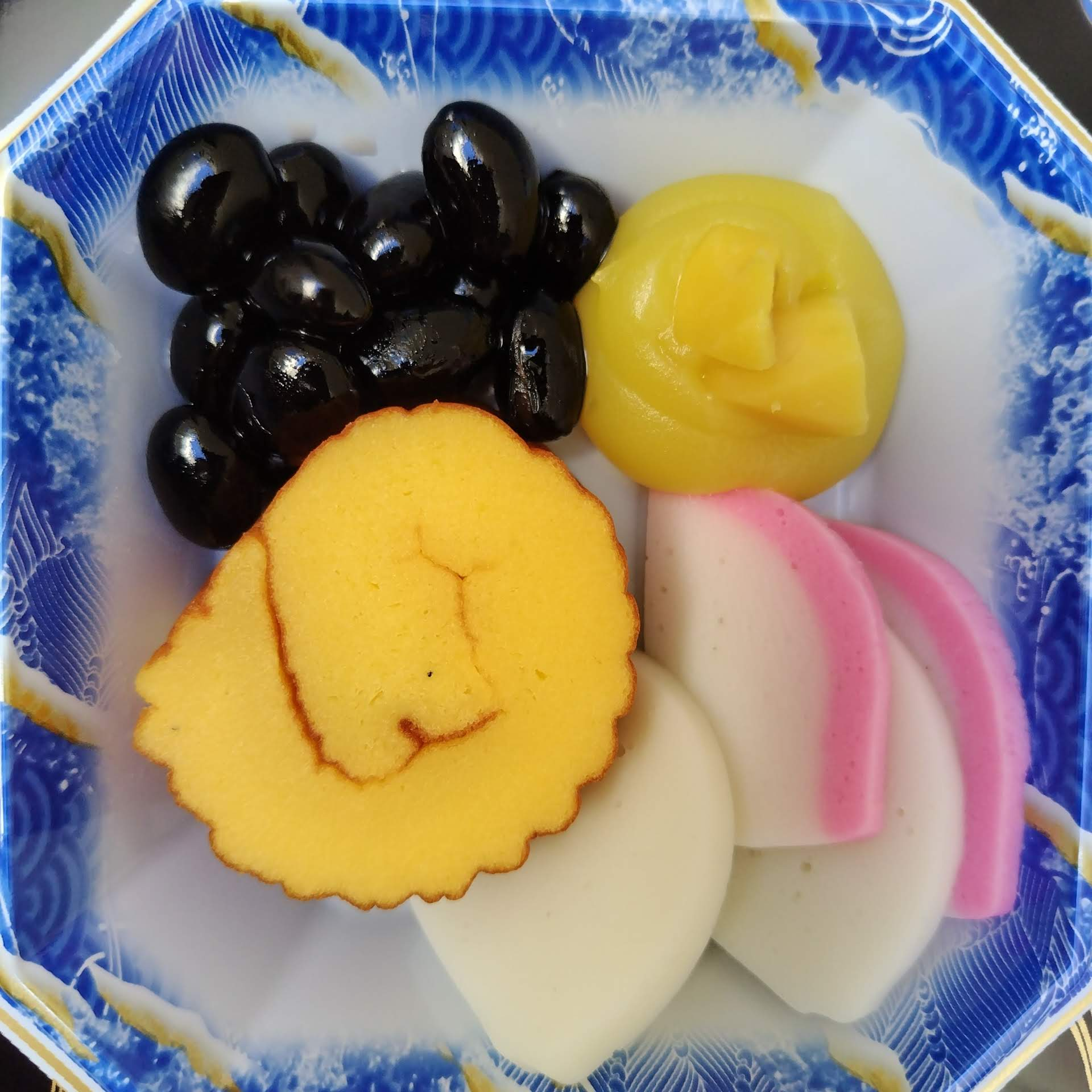 おせち盛り合わせ(栗きんとん、伊達巻、黒豆、かまぼこ)