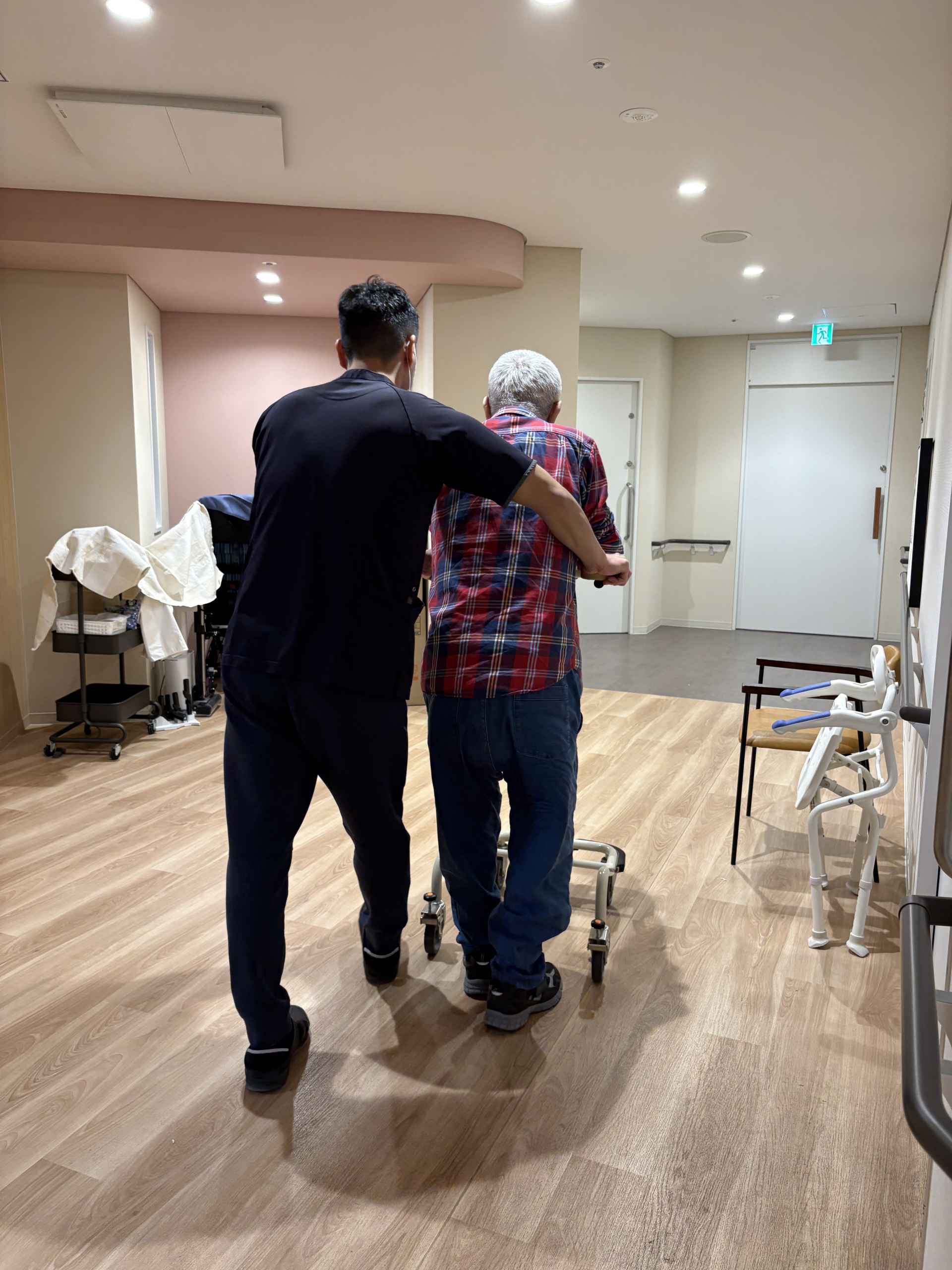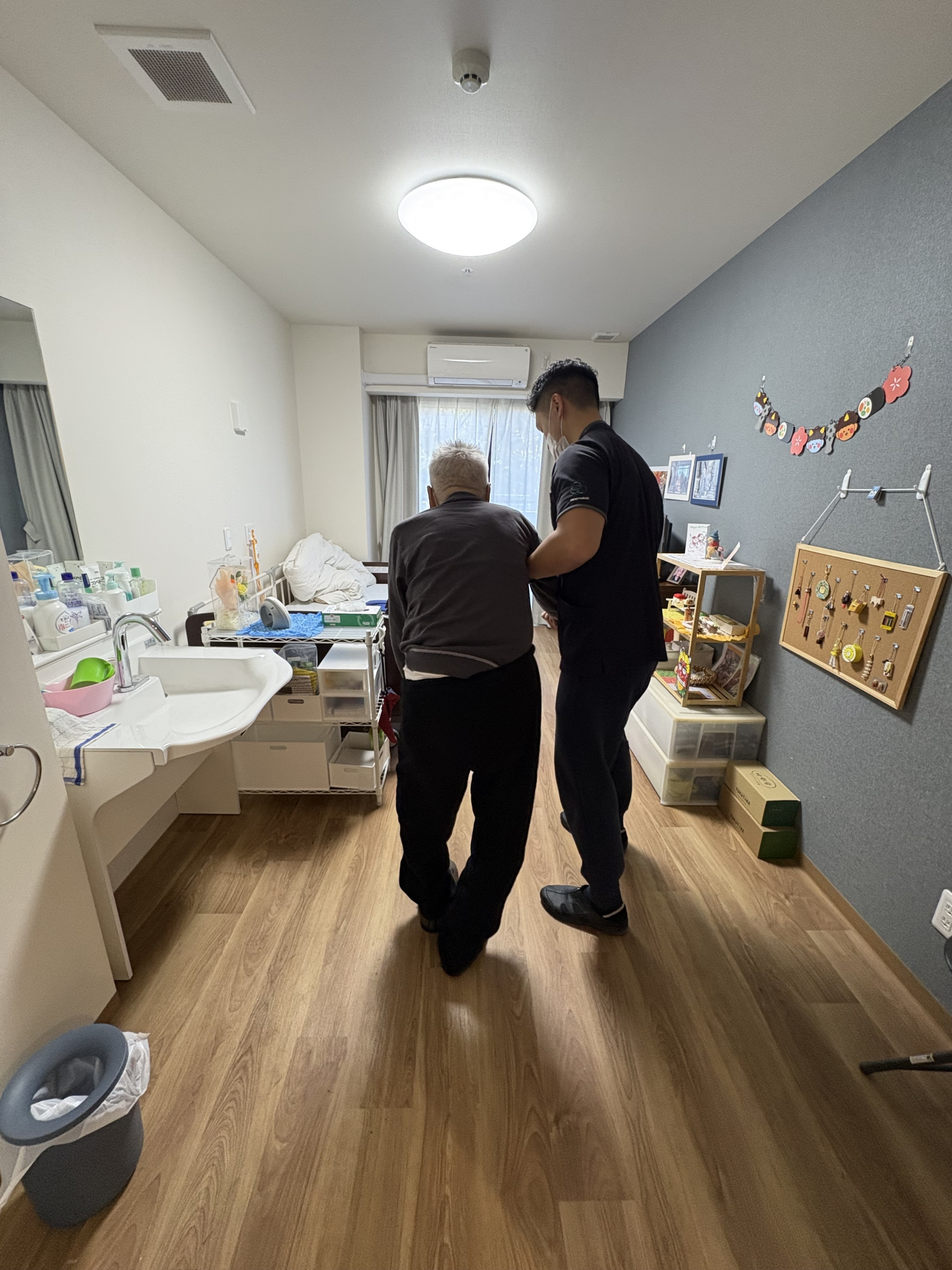 S様は、入居時は歩行は難しいかもしれない・・・と、思われていましたが、介助にて歩行ができるようになりました。