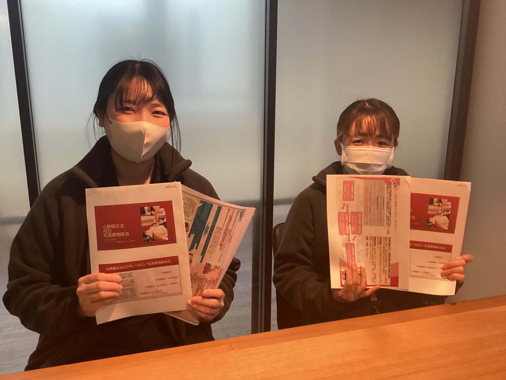 日頃より、心肺蘇生「エリック」人形を使用してなるべく実践に近い形で実習を行っています。
