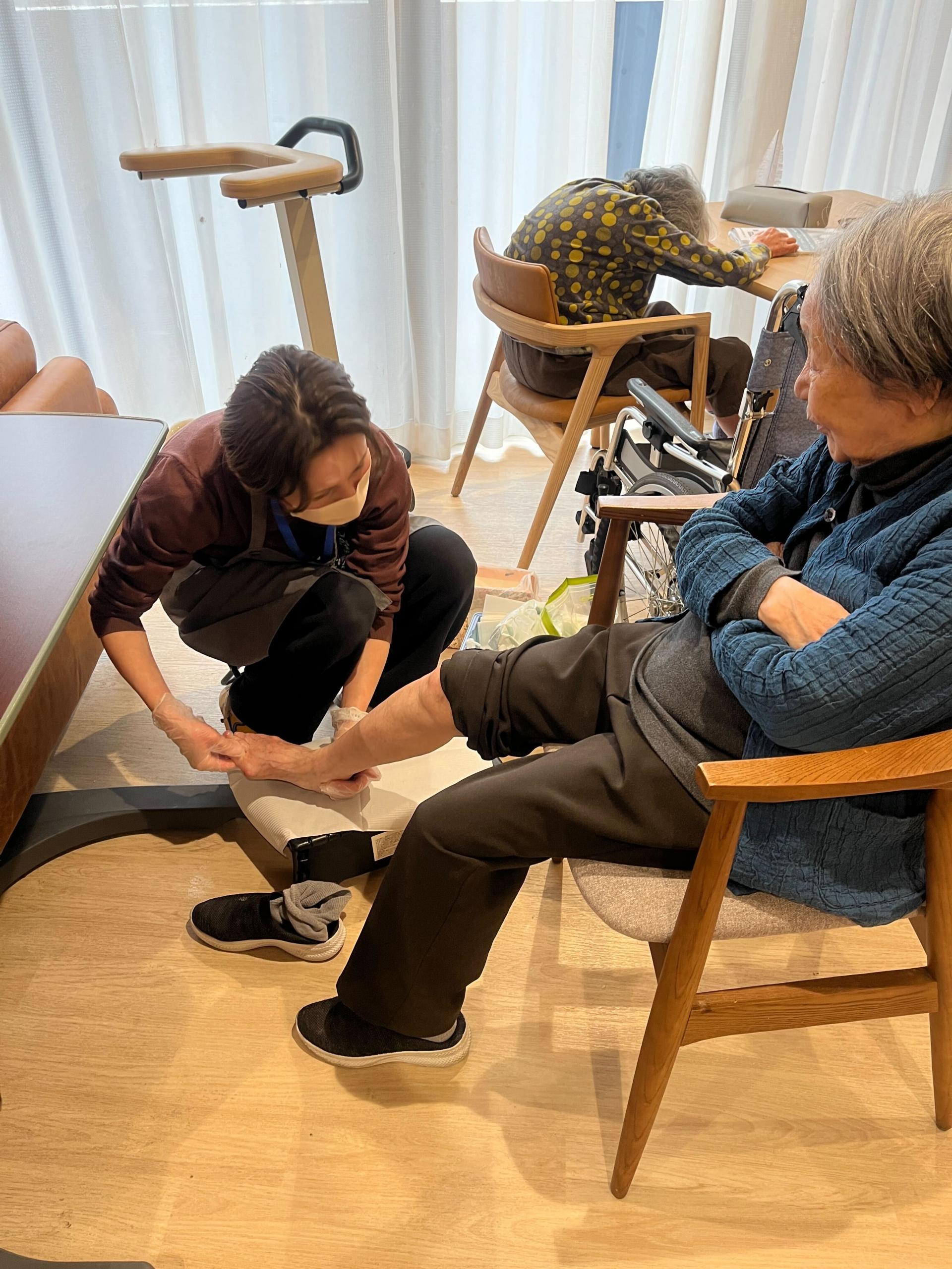 今日はなないろサロンのかたが来所され、ご希望のかたにそれぞれ、フット、ハンドのマッサージやフェイシャルマッサージを施術してくださいました。皆様、そろって「気持ちよかった~♡」「すべすべする!」とおっしゃってくださいます。