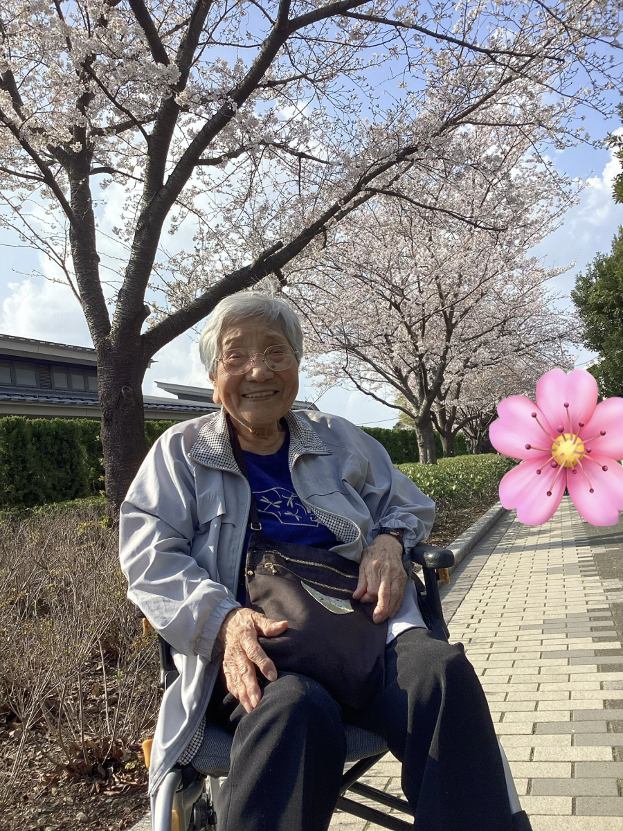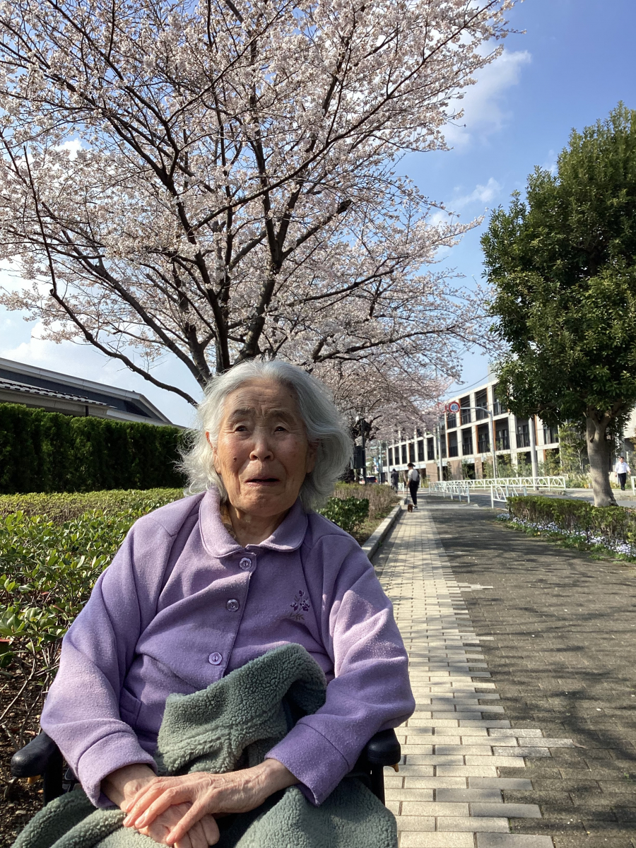 施設の前の桜が見頃になったので、天気の良い日に近くまで見にいきました。
