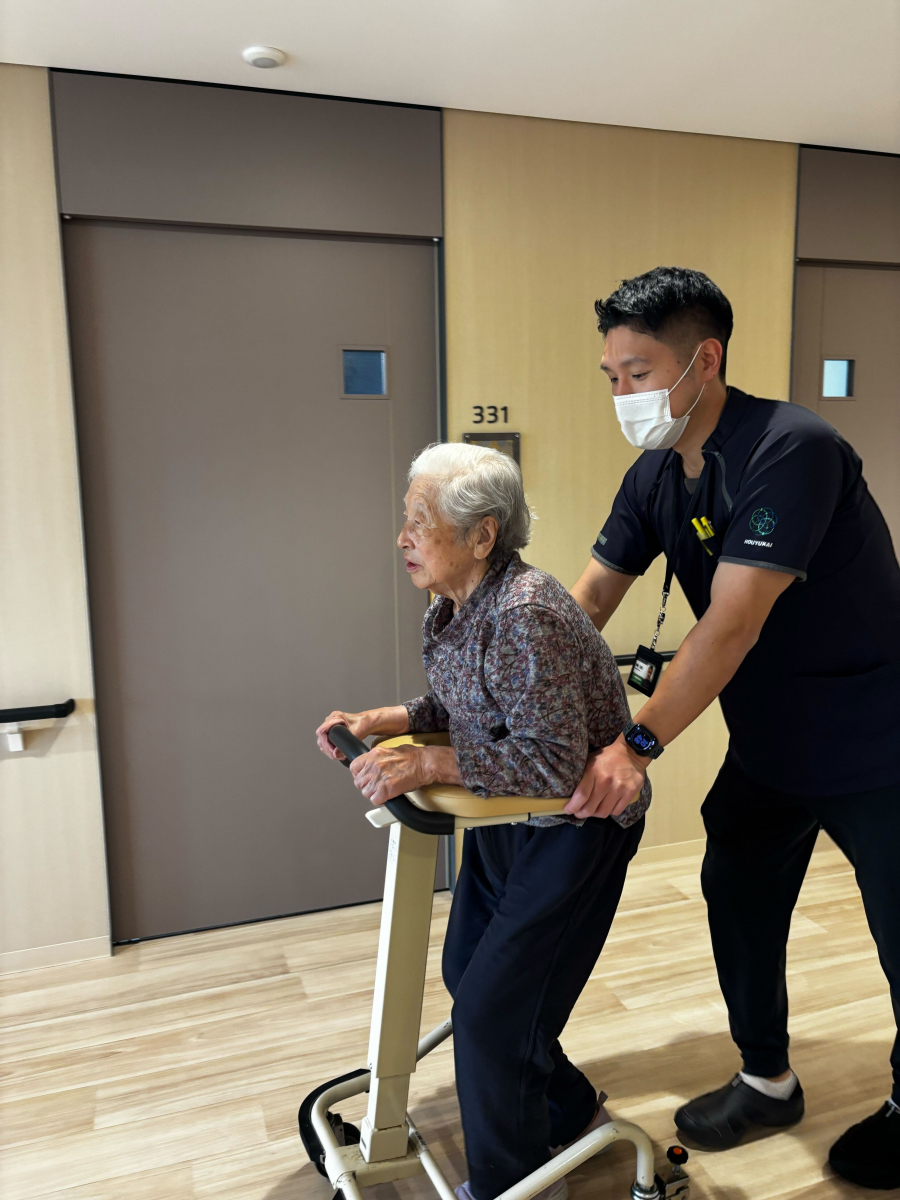 入居時は車椅子での移動が中心で、立ち上がることにも不安を感じておられた入居者様。