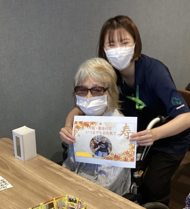 職員も敬老の日を一緒にお祝いすることができてとても嬉しかったです。