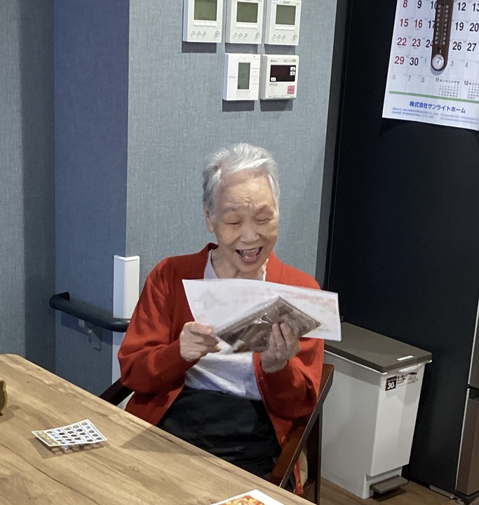 弦巻の家では敬老会が開催され、ご利用者様と一緒にお祝いをしましたが、ショートステイでは午後にビンゴ大会を開催し、参加者の方に番号カードを引いていただく場面も…!