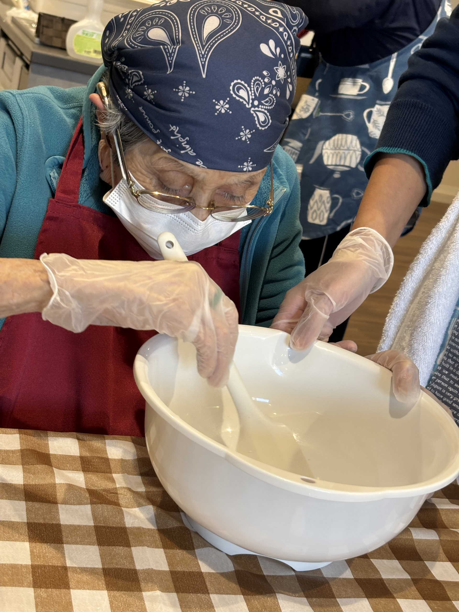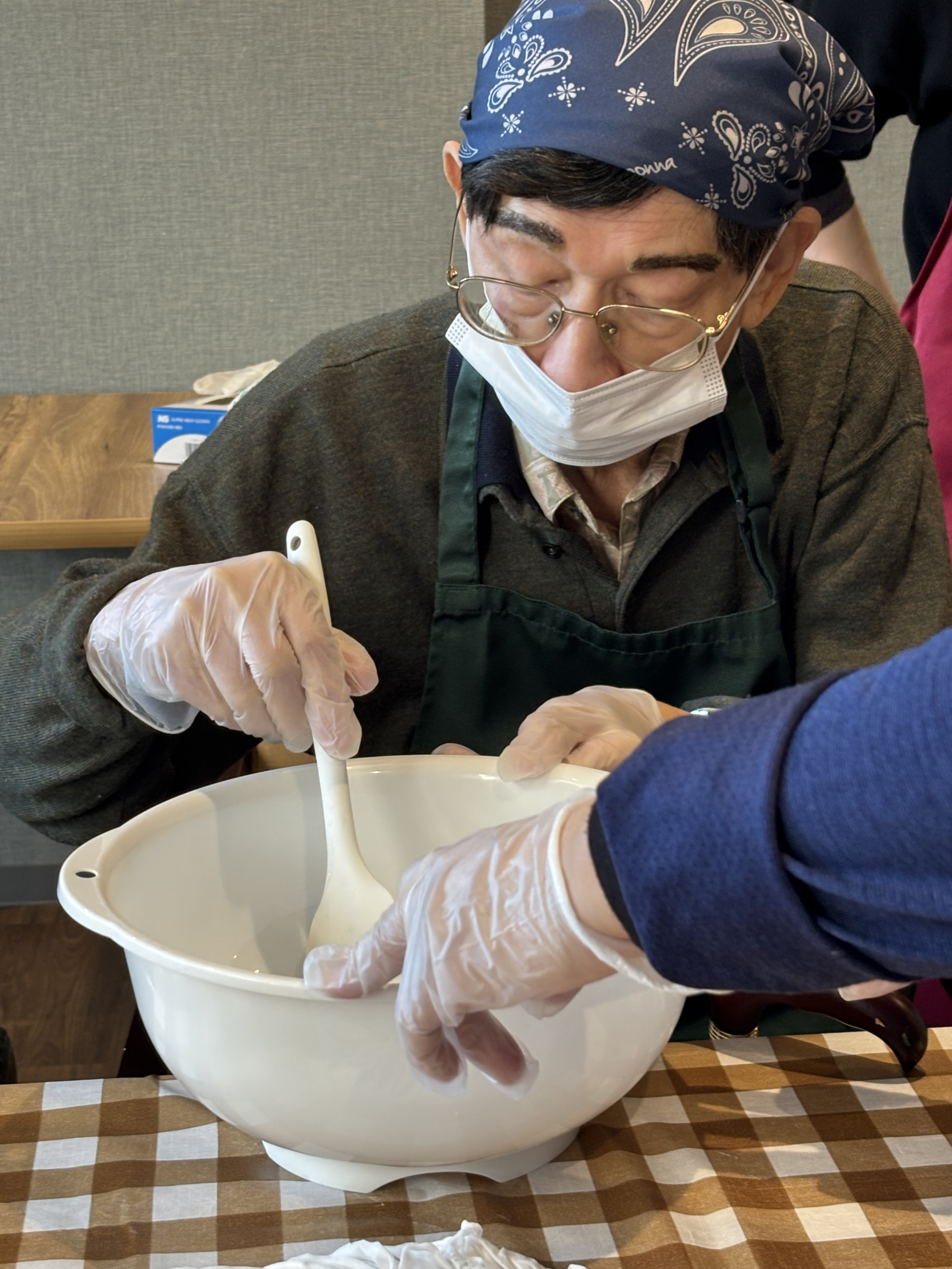 混ぜたり、練ったり、揉んだりと皆様力強く生地作りを頑張っています!