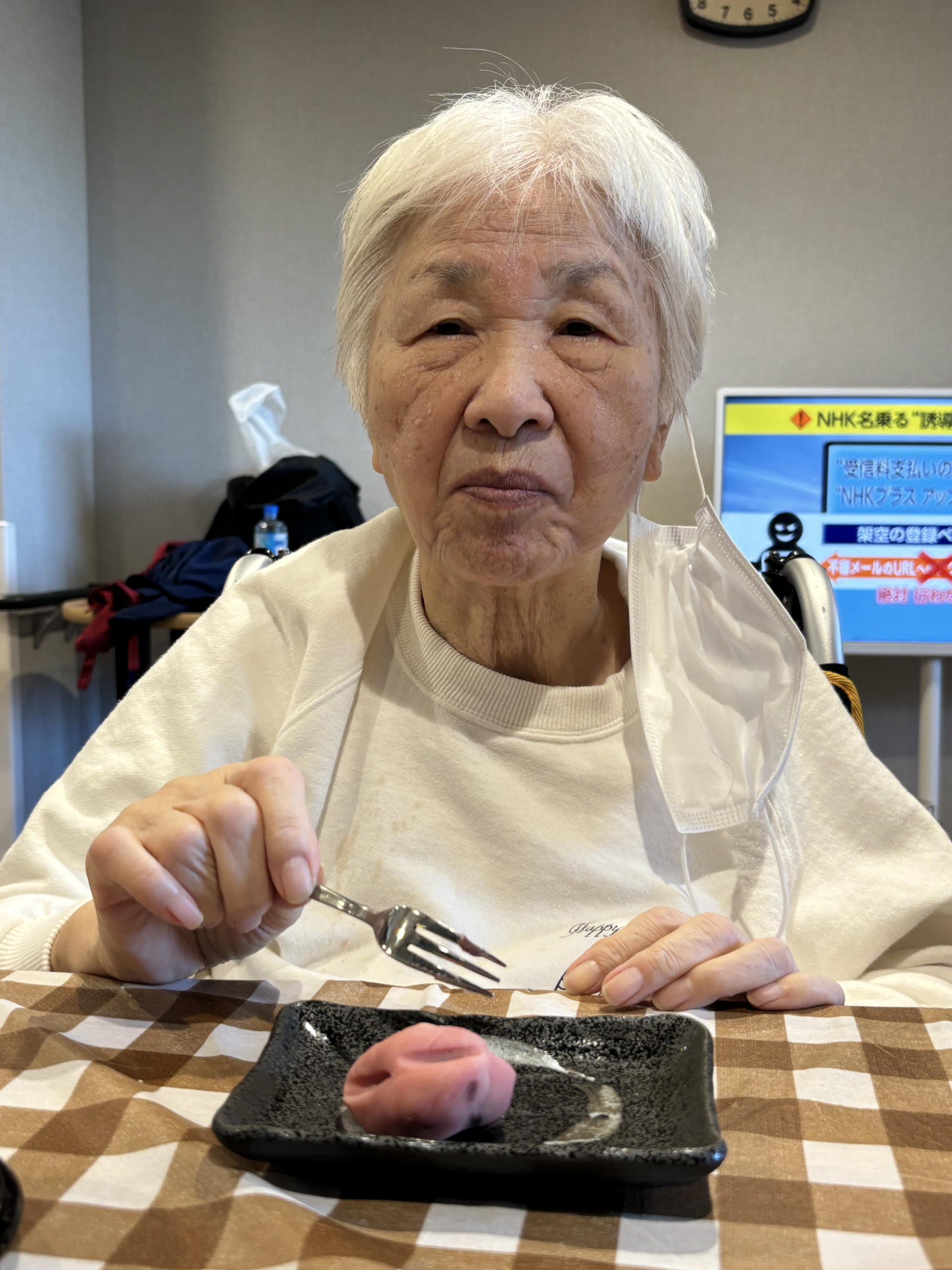 完成したら、緑茶と一緒に召し上がっていただきました。「和菓子をつくるなんてしたことないから、嬉しい」「甘くておいしい」との声があり、皆様の笑顔がとても印象的でした。