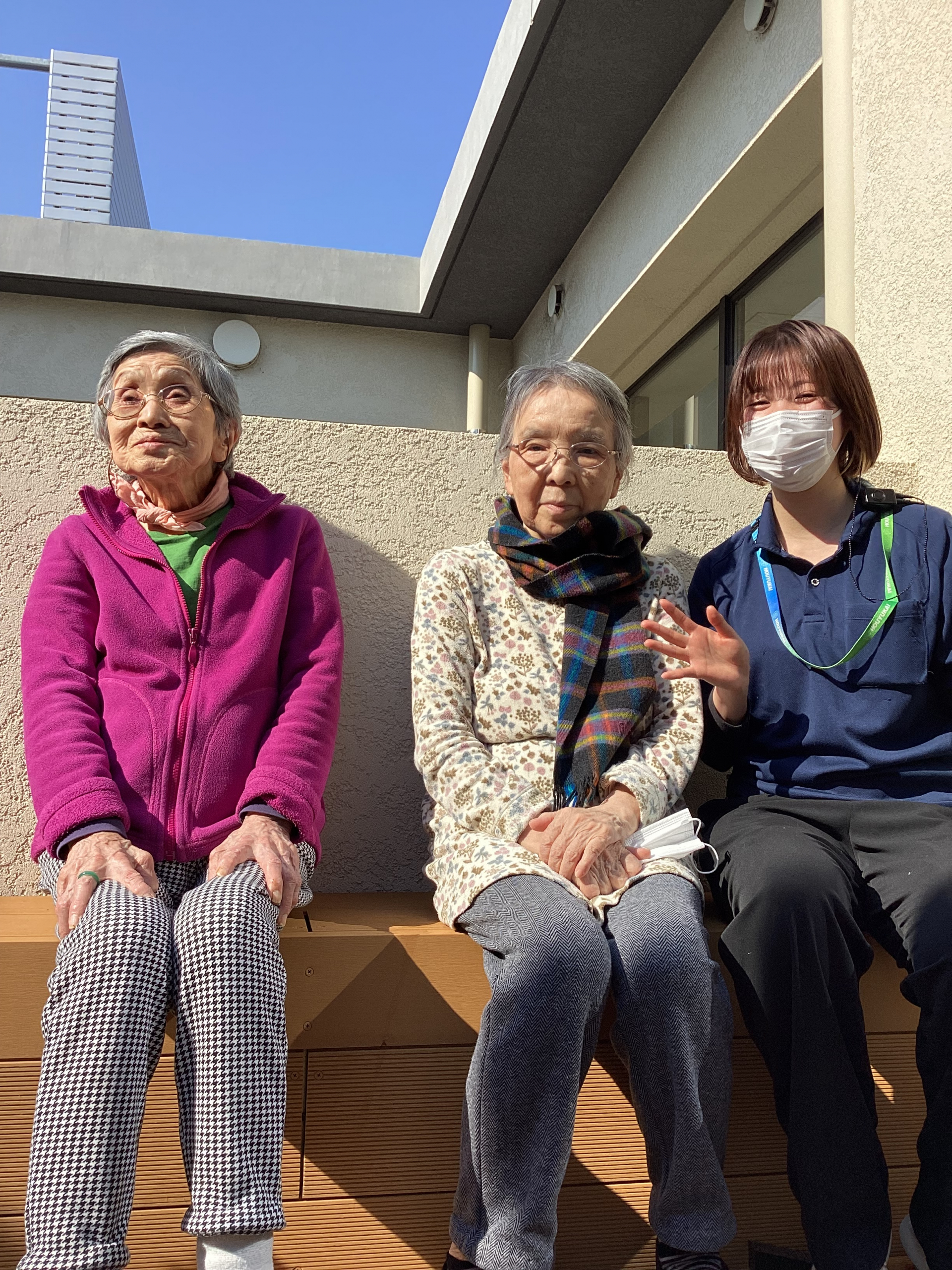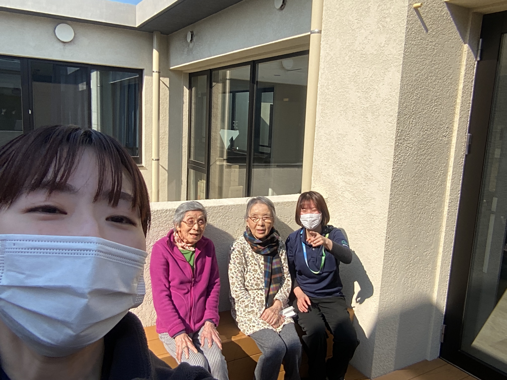 今日は、暖かい1日でしたので、利用者の皆さんと一緒にテラスで日向ぼっこを楽しみました。