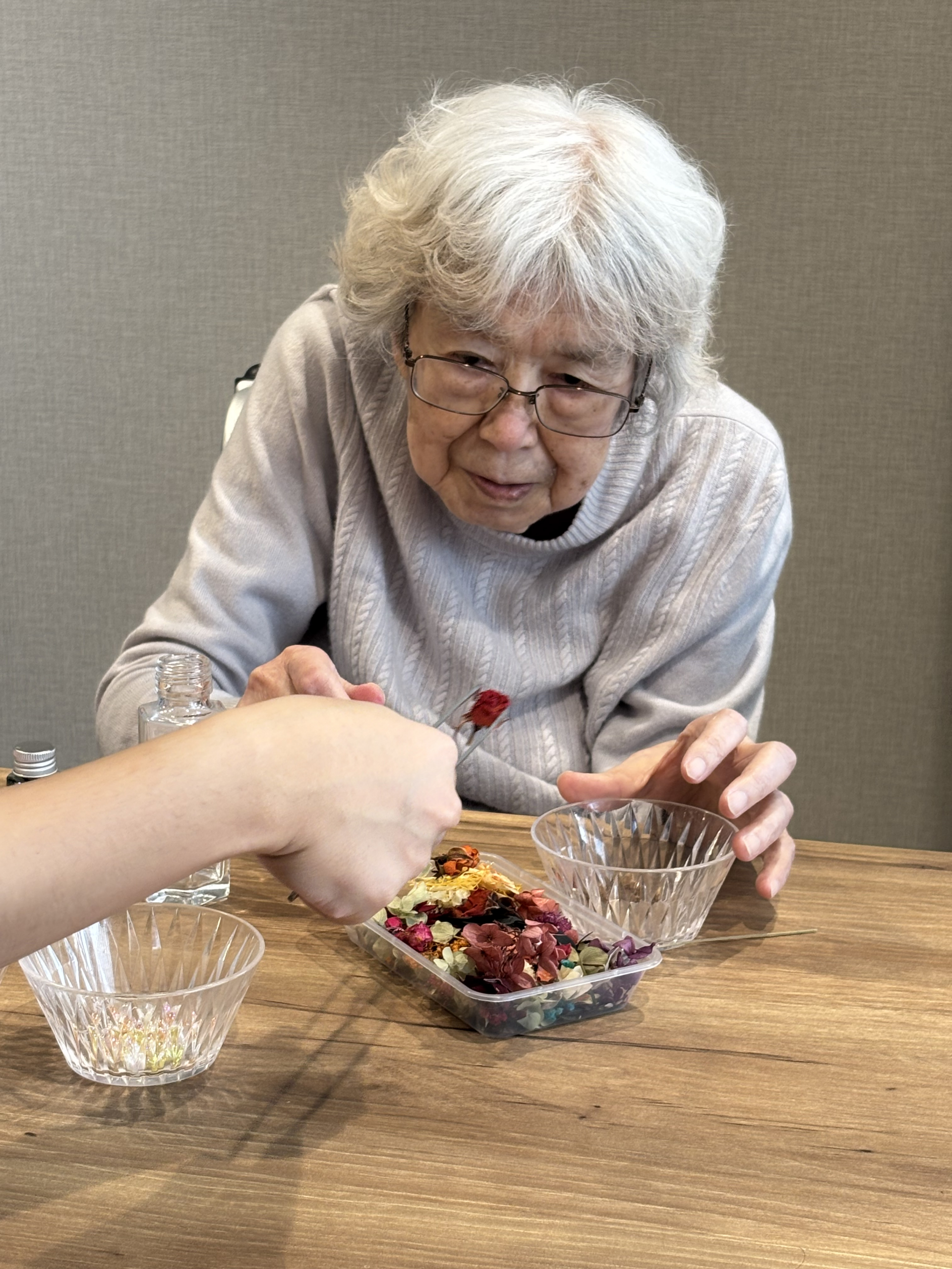 今日は、皆さんでハーバリウム作りを楽しみました!