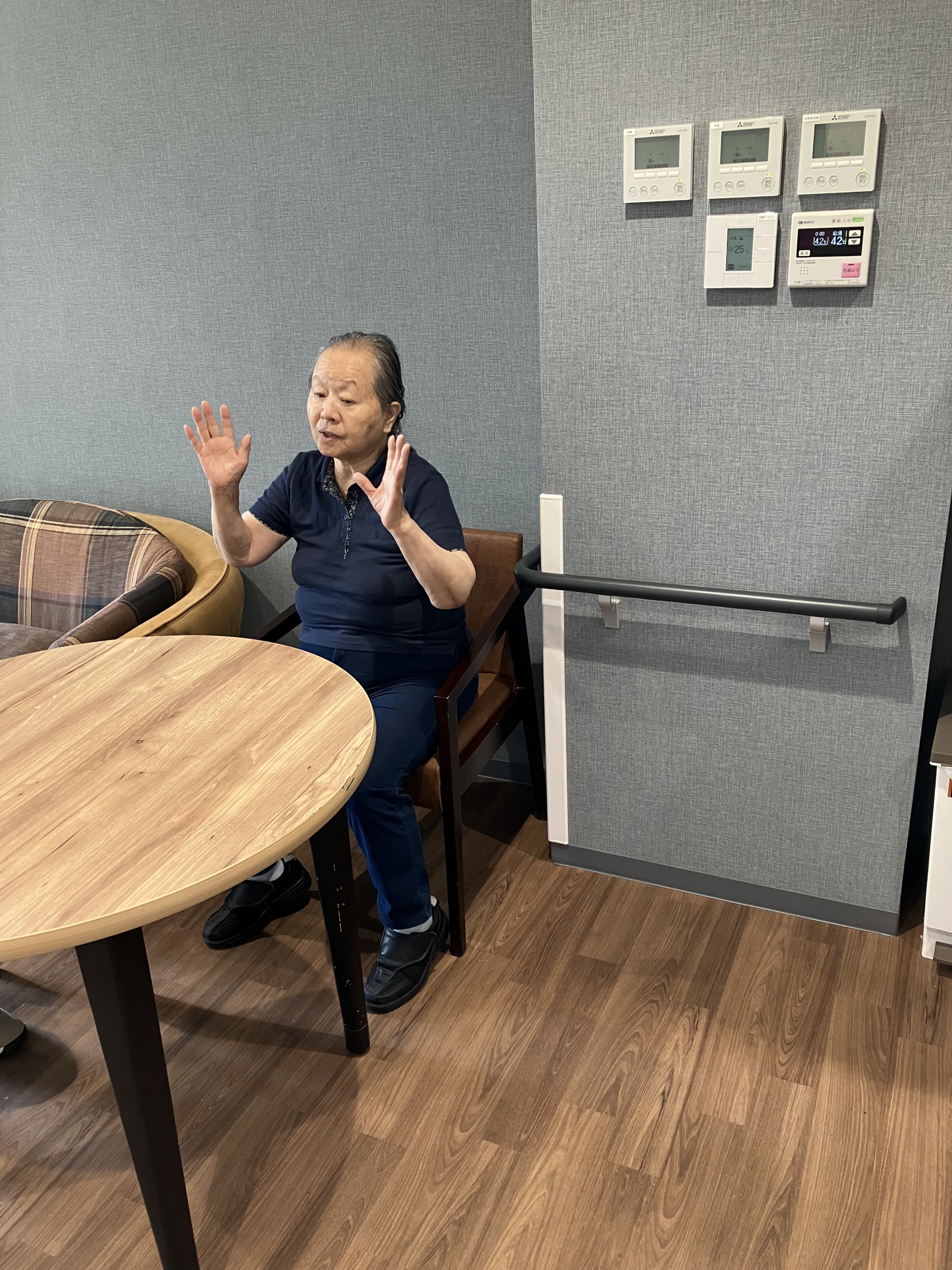 音楽に合わせて、手足をしっかり動かしながら体操されている様子は、見ているこちらまで元気をもらえるほどです!!