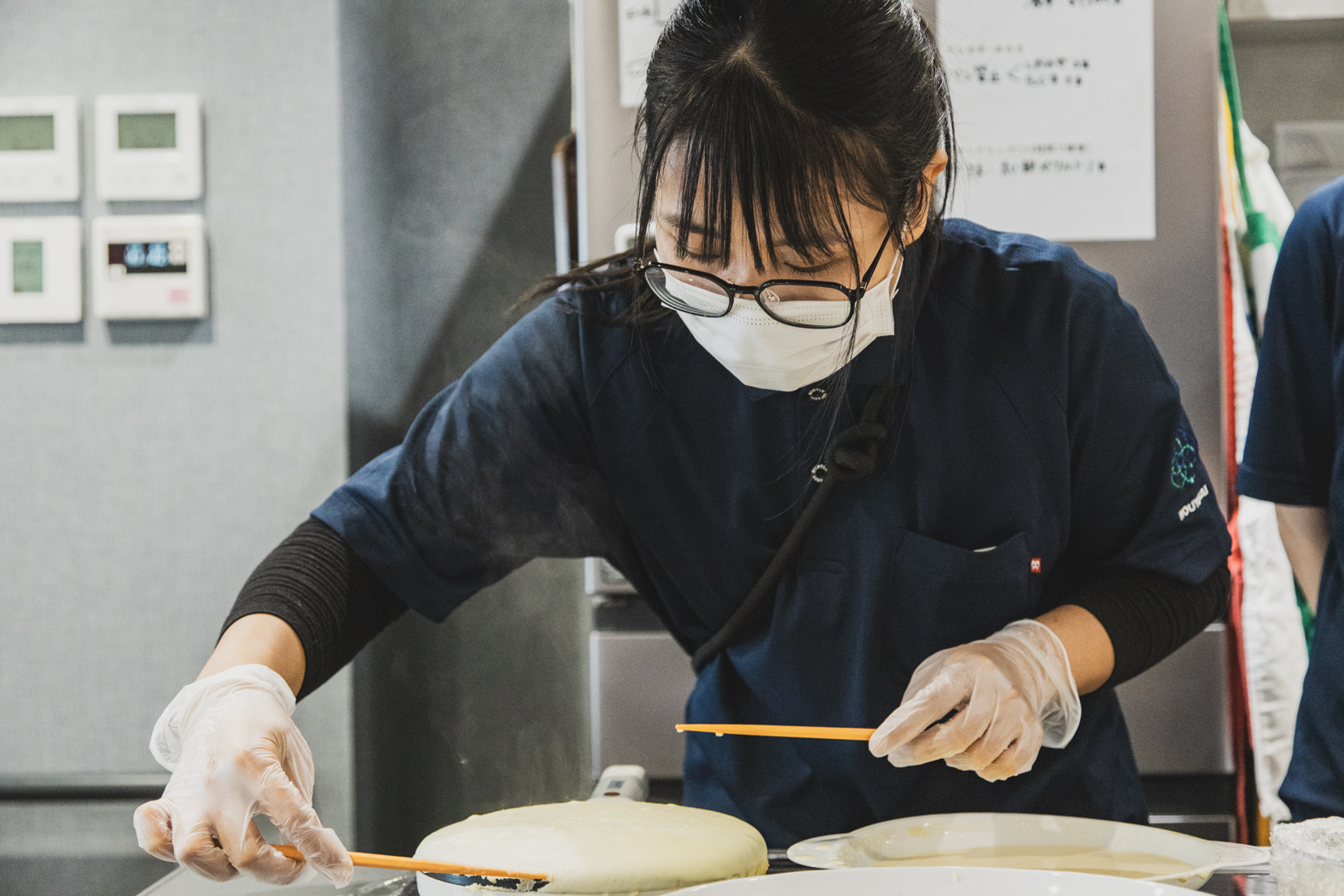 生地は職員たちが焼いてクレープにのせる