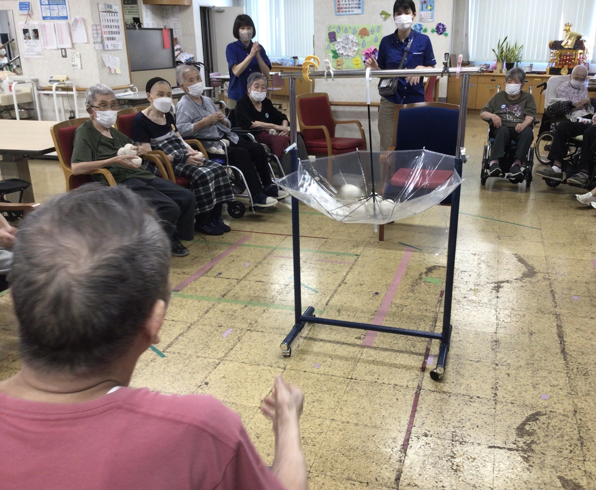 本日午後のプログラムは「玉入れゲーム」でした。今回は団体戦ではなく、おひとりずつ、5個の玉を投げ、幾つ入ったかを数えました。