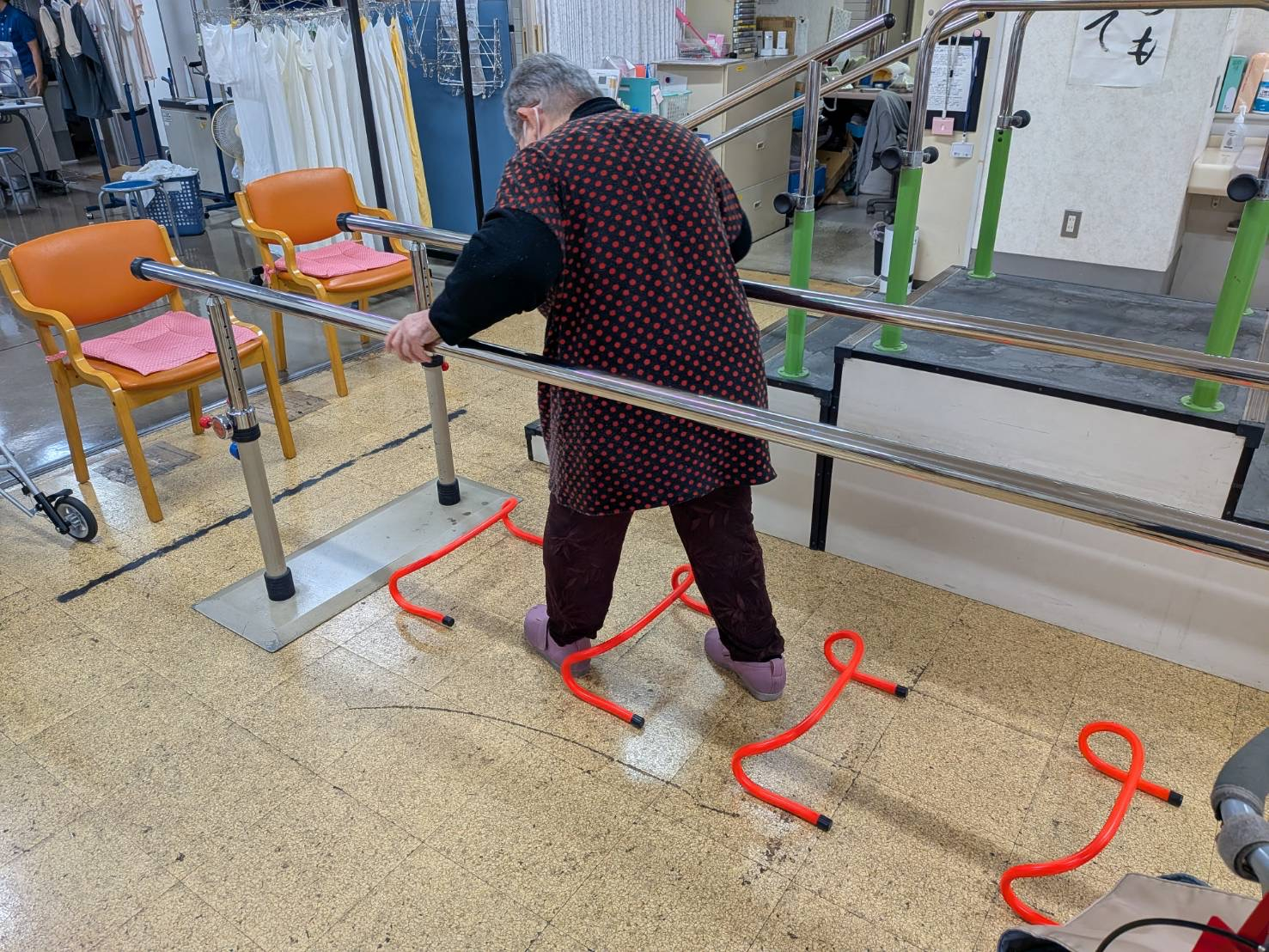 今月から個別機能訓練でミニハードルを使ったトレーニングを始めました。