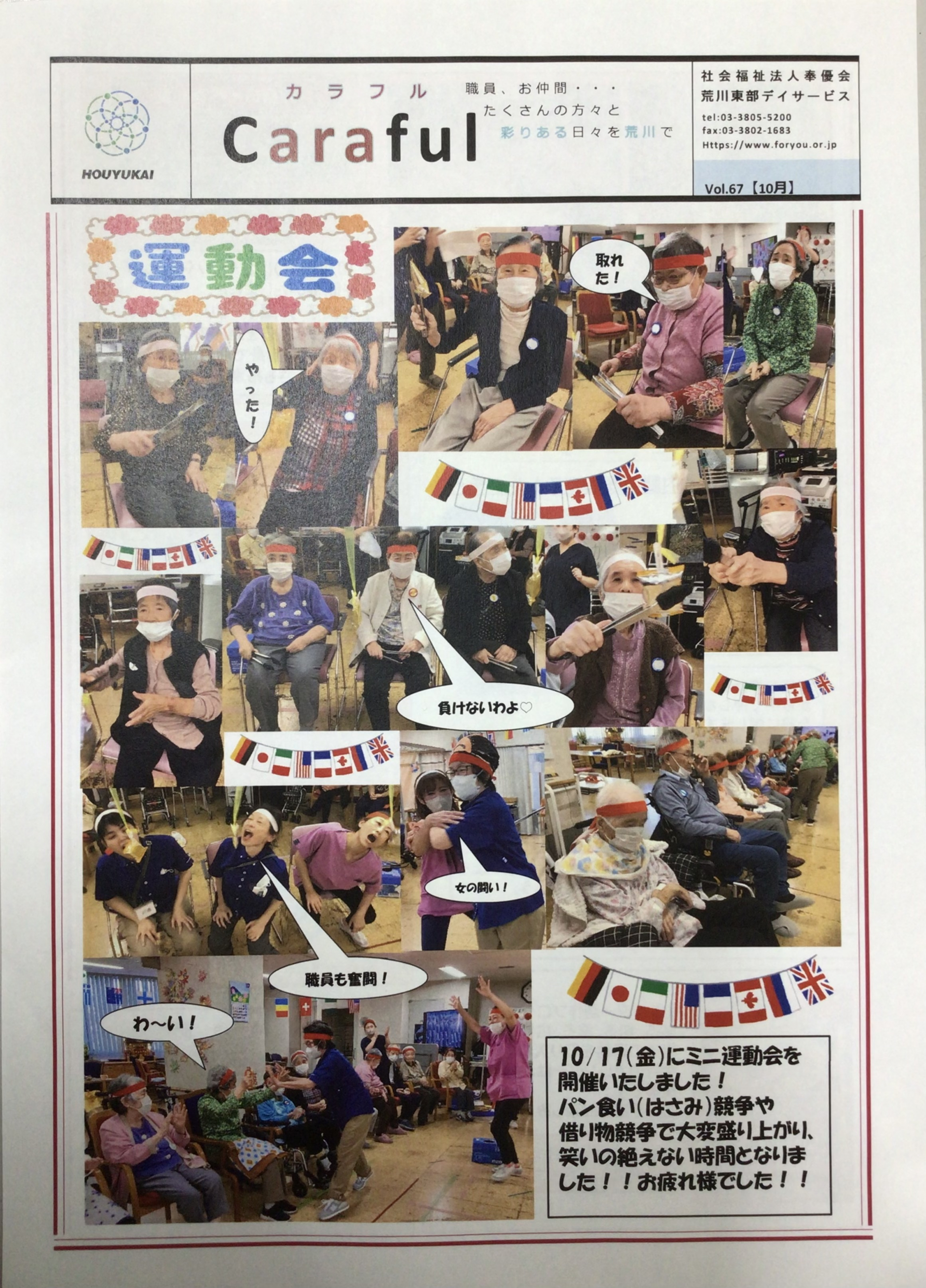 2025.11.05 デイサービス 【荒川デイ】カラフル! Tweet シェアする こんにちは 本日は、当センターの『カラフル』デイサービス通信をお届けします 先月の『ミニ運動会』や『おやつイベント』のご様子を載せています 是非ご覧ください! Arakawa day ky #デイサービス #荒川東部高齢者サービスセンター #荒川デイ #デイサービス通信 #カラフル 前の記事 2025.11.06 デイサービス 【荒川デイ】出前昼食会 次の記事 2025.11.04 デイサービス 【荒川デイ】11月ランチメニュー 一覧へ戻る