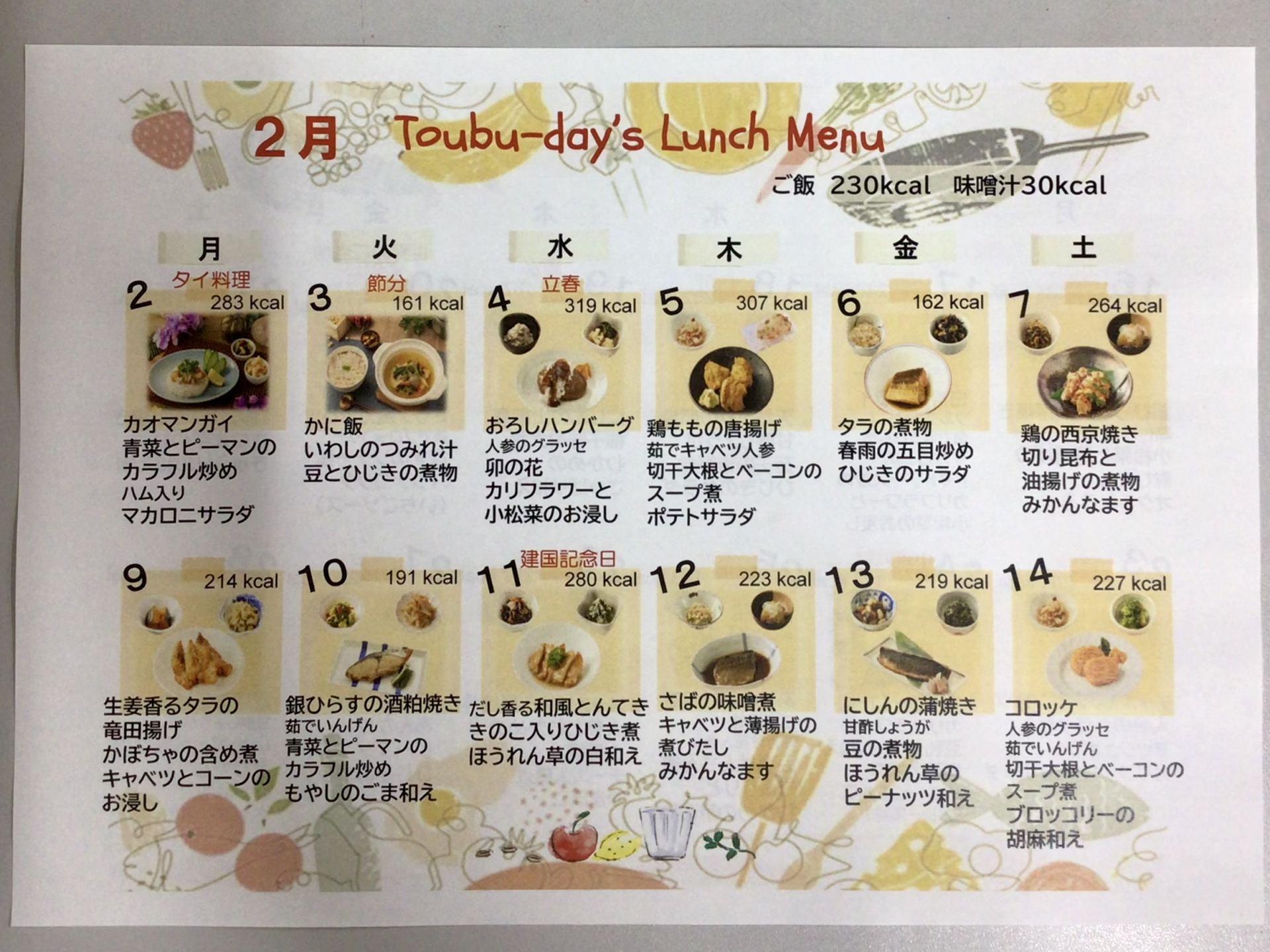 2026.02.03 デイサービス 【荒川デイ】2月の献立表 (松) Tweet シェアする 荒川東部デイサービス 2月の献立表です。今月はご当地グルメ、海外編もありますので、お楽しみに♪ #献立表 #デイサービス 前の記事 2026.02.03 デイサービス 【荒川デイ】カラフル1月号 (松) 次の記事 2026.02.03 デイサービス 【荒川デイ】2月のプログラム表 (松) 一覧へ戻る